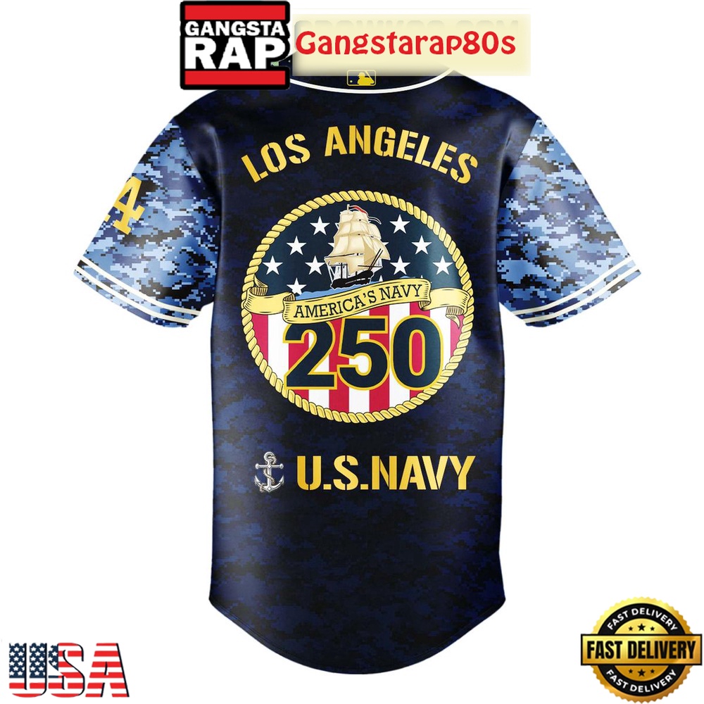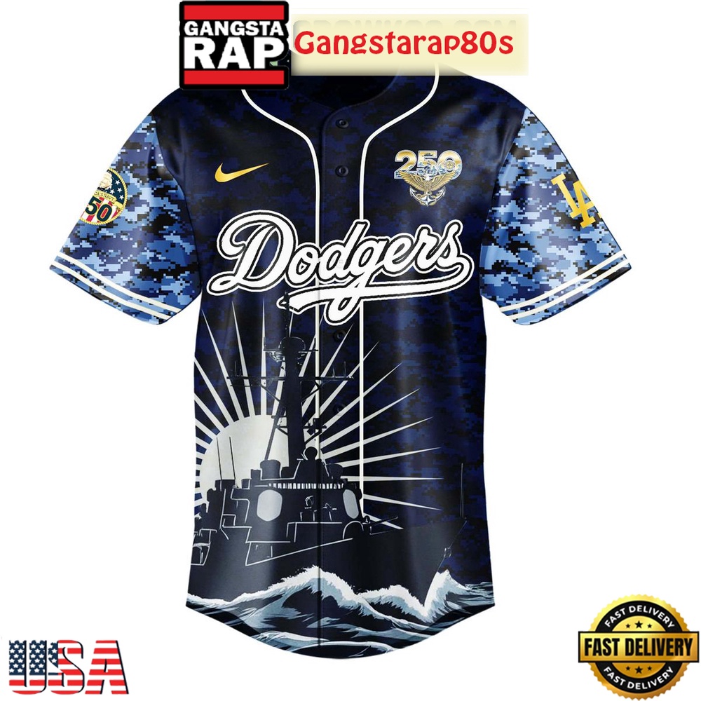 Los Angeles Dodgers Celebration Happy Birthday US Navy 250 Years 2025 Special Baseball Jersey