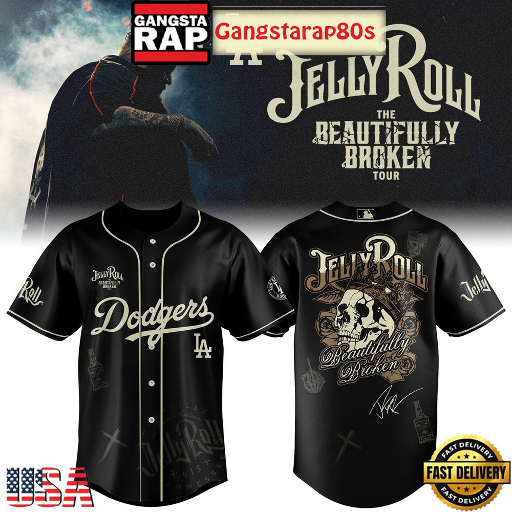 Step up your game-day fashion with the Los Angeles Dodgers Collab Jelly Roll 2025 Tour Baseball Jersey. This exclusive 2025 baseball jersey is more than just sportswear; it’s a fusion of style, fandom, and premium quality. Tailored for the ultimate Dodgers fan, this jersey pays homage to the iconic team and the vibrant musical journey of Jelly Roll. Crafted to resonate with both sports enthusiasts and music lovers, the jersey boasts unique design elements inspired by Jelly Roll’s 2025 tour.
