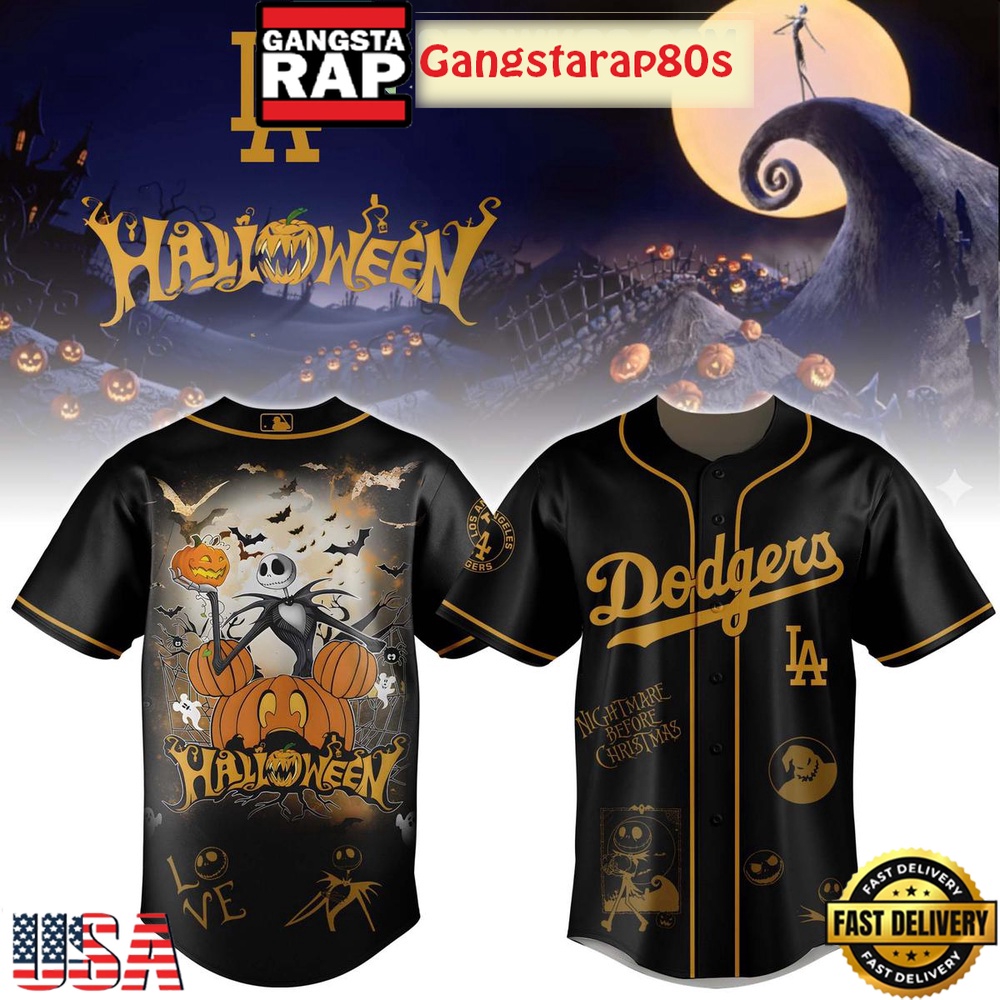 Photos Of Los Angeles Dodgers The Nightmare Before Christmas Jack Skellington Halloween Baseball Jersey Shirt