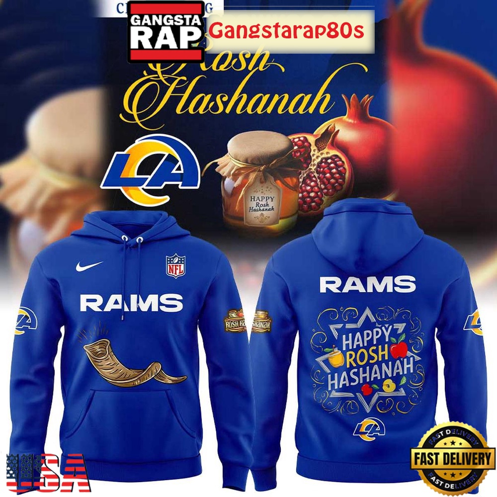 With its blend of style, comfort, and cultural significance, the Los Angeles Rams Happy Rosh Hashanah Hoodie is the perfect addition to any game day outfit. It’s not just a hoodie; it’s a statement of pride in both your heritage and your team. This hoodie also makes an ideal gift for fellow Rams fans, combining the celebration of a new year with the excitement of football season.