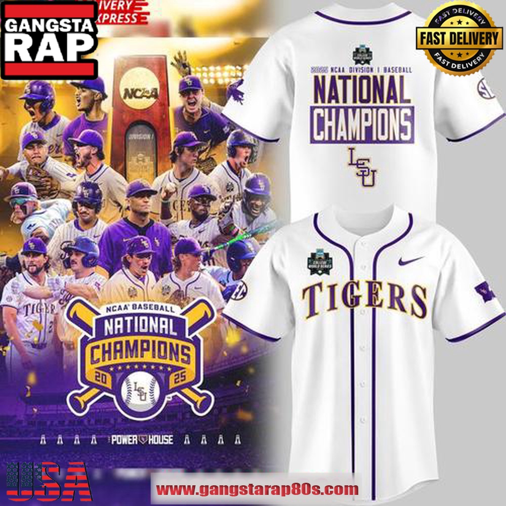LSU Tigers 2025 National Champions White Edition Baseball Jersey Shirt