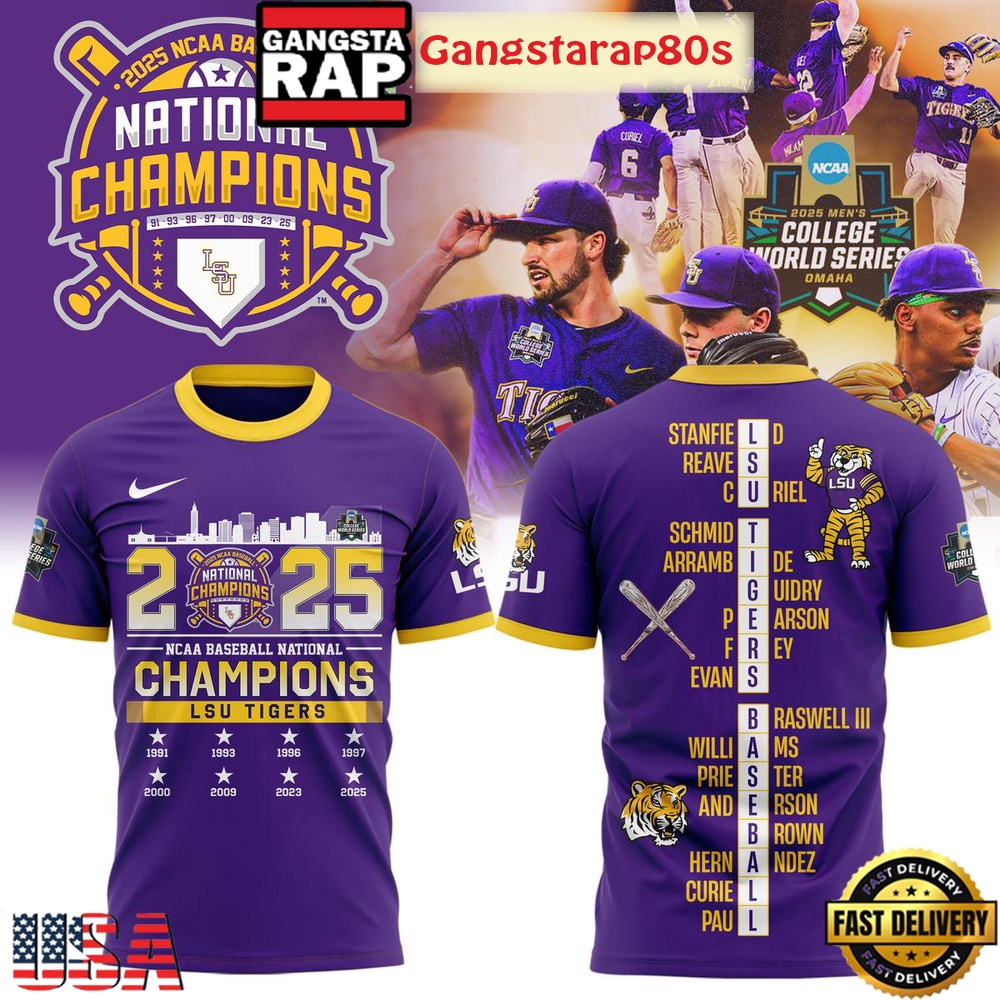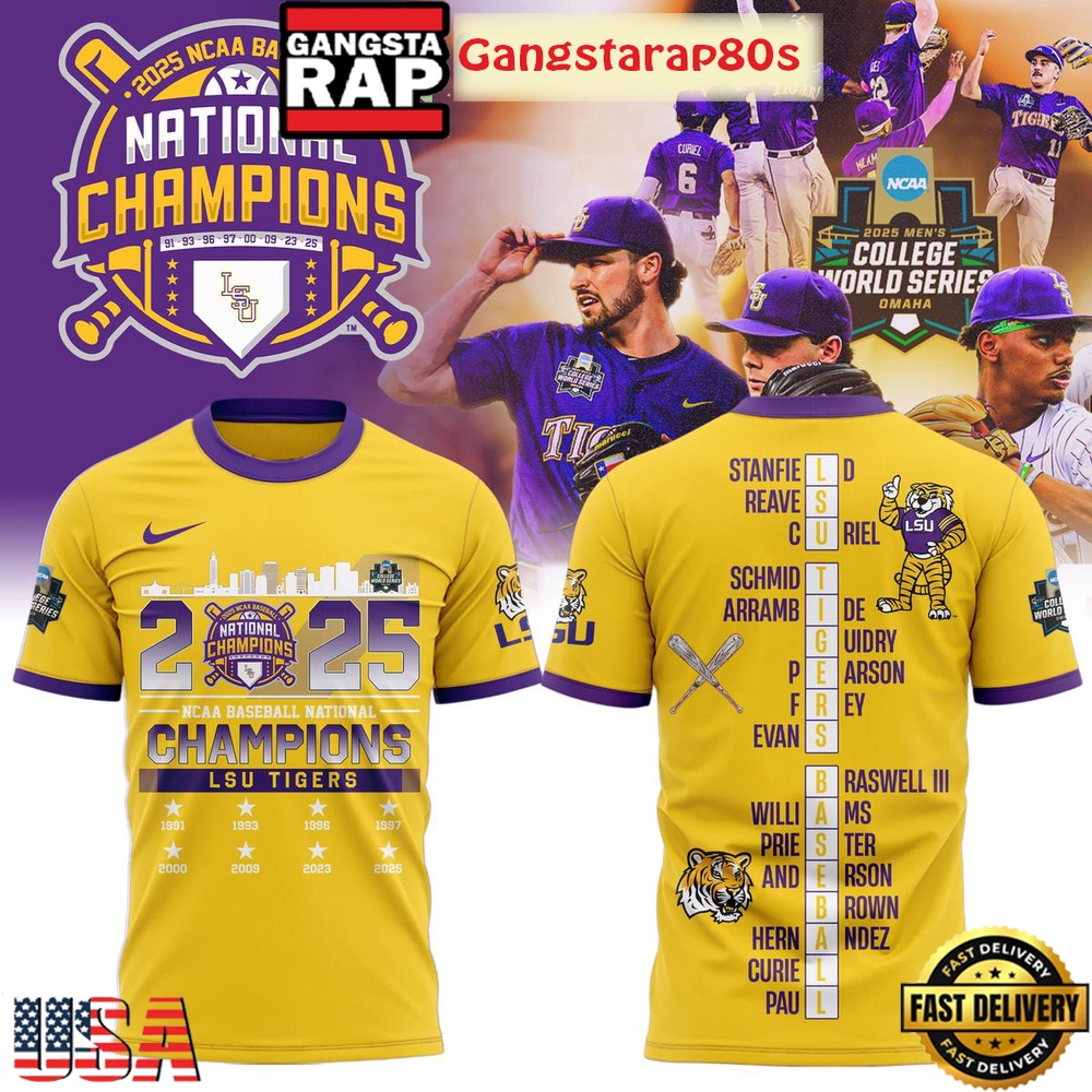 LSU Tigers 2025 NCAA Baseball National Champions All Over Print Hoodie T-Shirt
