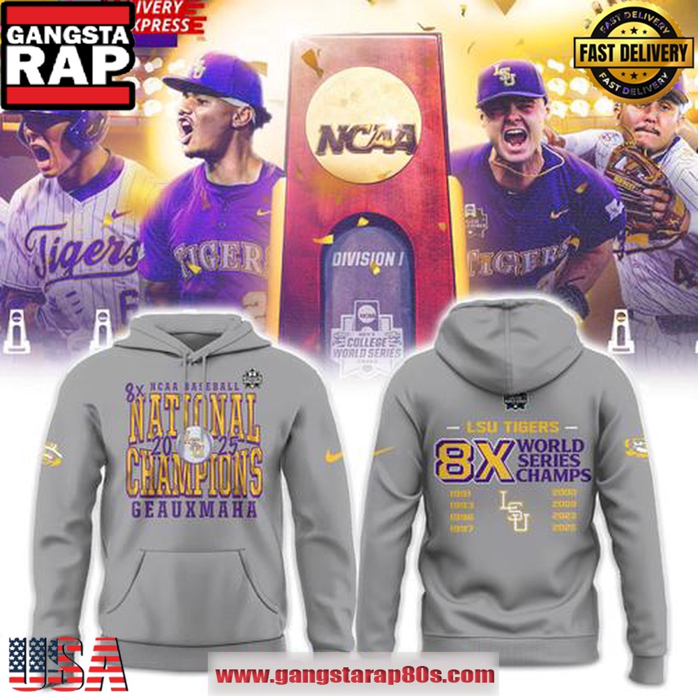 Unleash Your Team Spirit with the Exclusive LSU Tigers 8X College World Series Champions 2025 Gray Special Edition All Over Print Hoodie