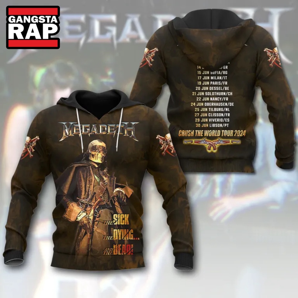 Join fellow music lovers in showcasing your support for Megadeth. Whether you’re headbanging in the front row or just out and about, the Megadeth Band Crush The World Tour 2024 Design Hoodie Shirt will keep you feeling connected to the music you love while keeping you warm and stylish. This versatile piece appeals to rock enthusiasts and is the perfect gift for anyone who considers themselves a die-hard fan. Don’t miss out on the opportunity to own this exclusive piece of merchandise that not only represents the band but also serves as a reminder of the unforgettable concerts and experiences to come.