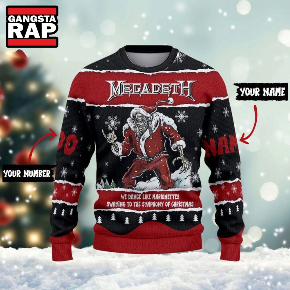 Not only is the Megadeth We Dance Like Marionettes Swaying To The Symphony Of Ugly Sweater stylish, but it also carries a deeper meaning. It reflects the emotion and creativity that come from live music experiences, encapsulating the joyful spirit of the season. Pair this festive attire with your favorite jeans or leggings for a laid-back, yet edgy look that’s perfect for all occasions.