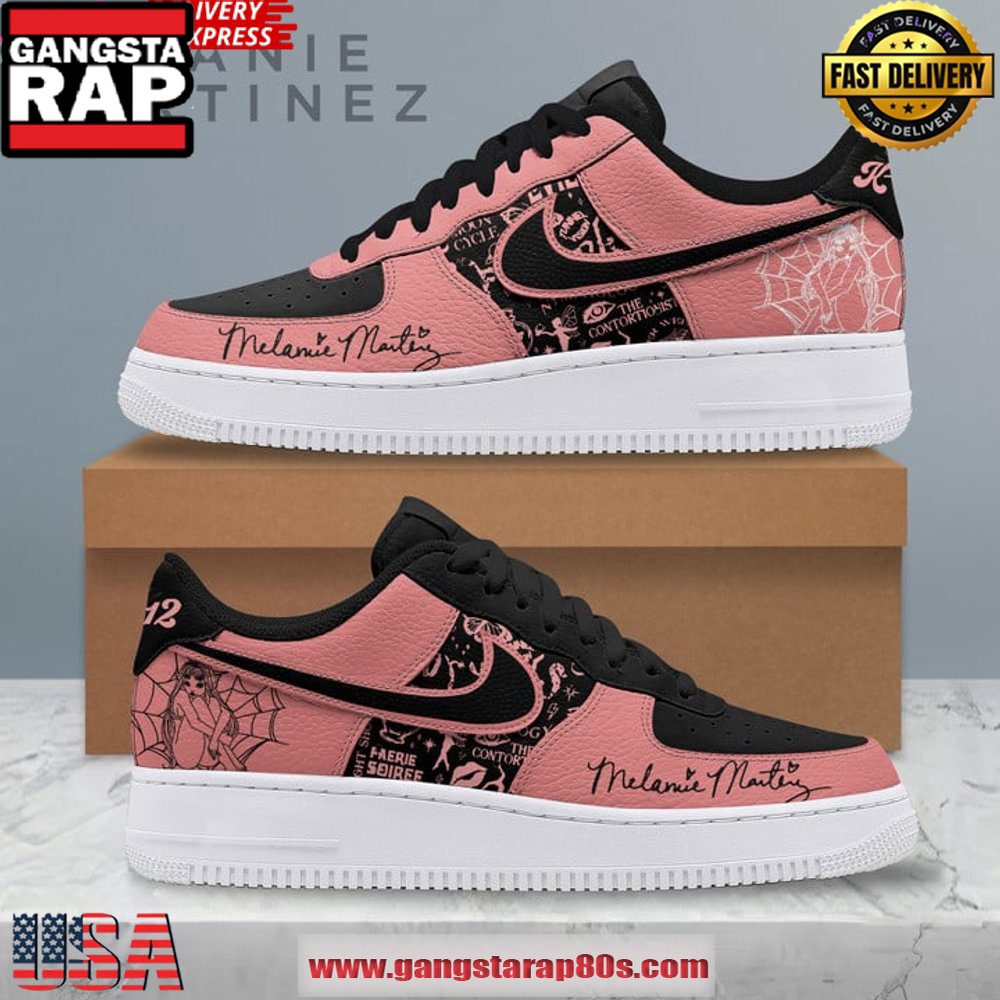 Crafted in 2023, this latest edition combines nostalgia and innovation, embodying the spirit of individuality. The sneakers offer not just style but also remarkable comfort, thanks to the renowned Air Force 1 cushioning that ensures superior support with every step. The intricate detailing reflects Melanie Martinez’s artistic vision, making these shoes a perfect match for fans and fashion enthusiasts alike.