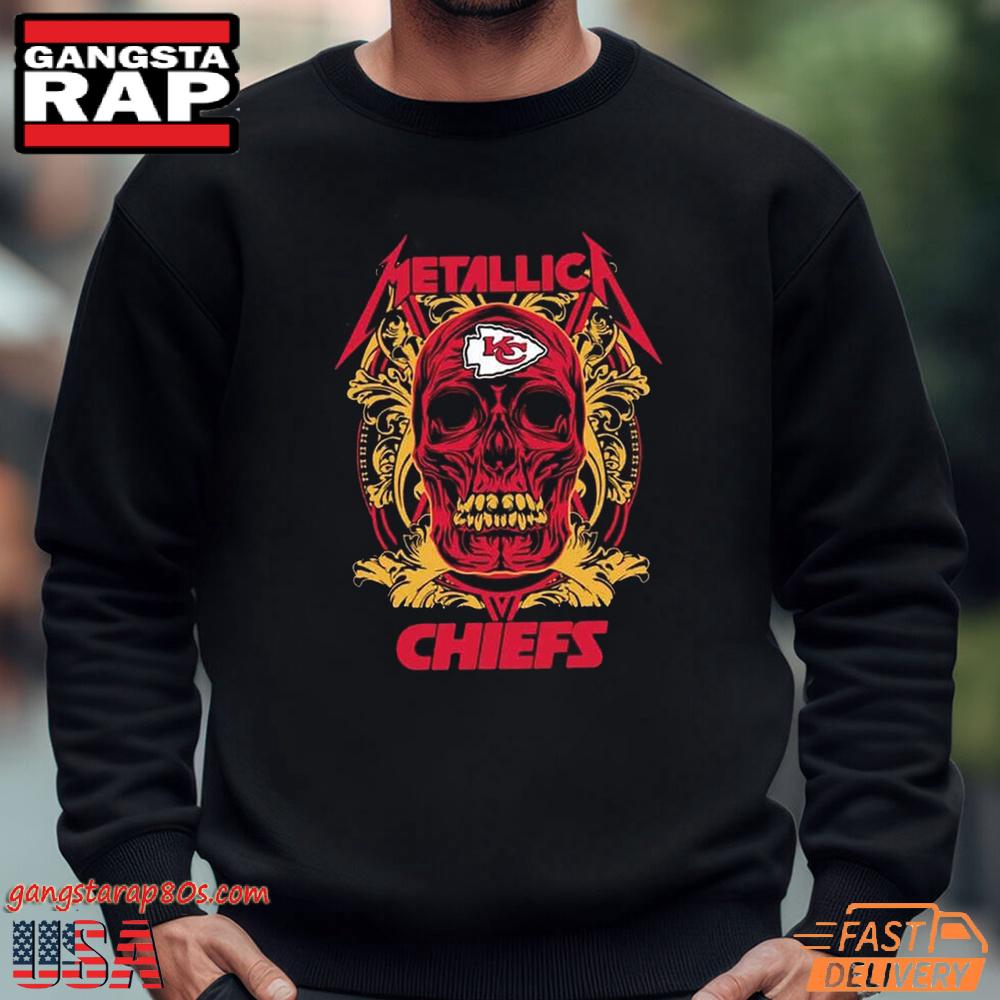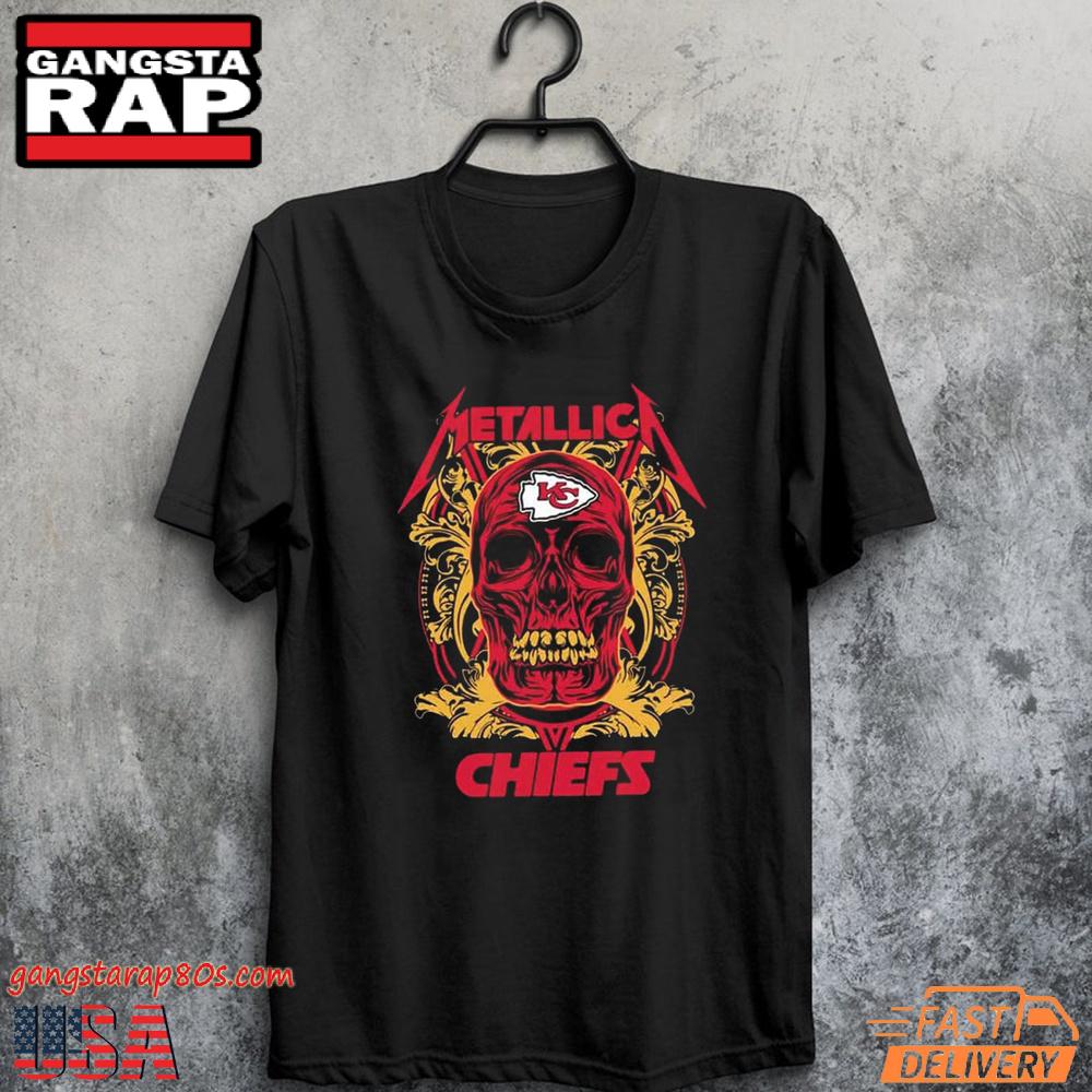 Moreover, the t-shirt’s universal appeal ensures it fits comfortably with any gender and style preference, making it the perfect gift choice for friends, family, or even for yourself. Connect with a community of passionate Metallica fans and Chiefs supporters by adding this to your wardrobe.