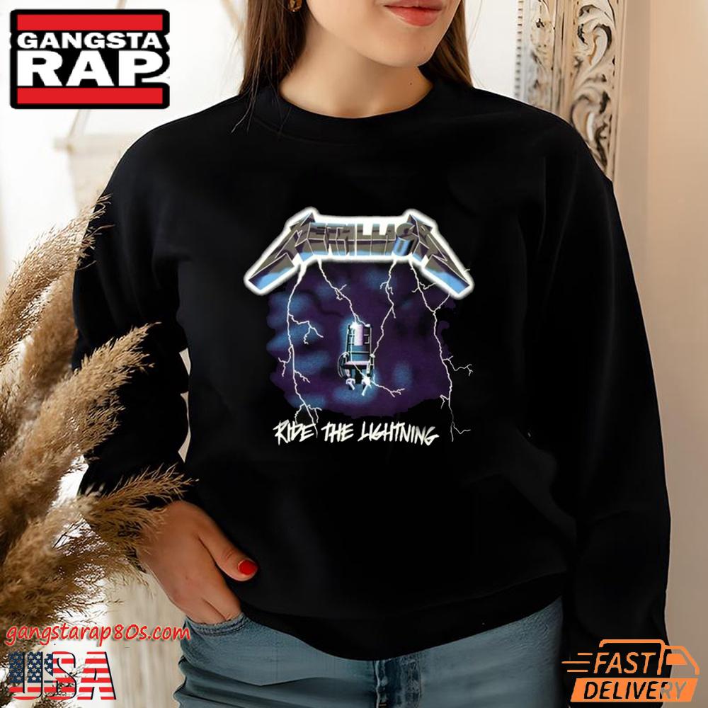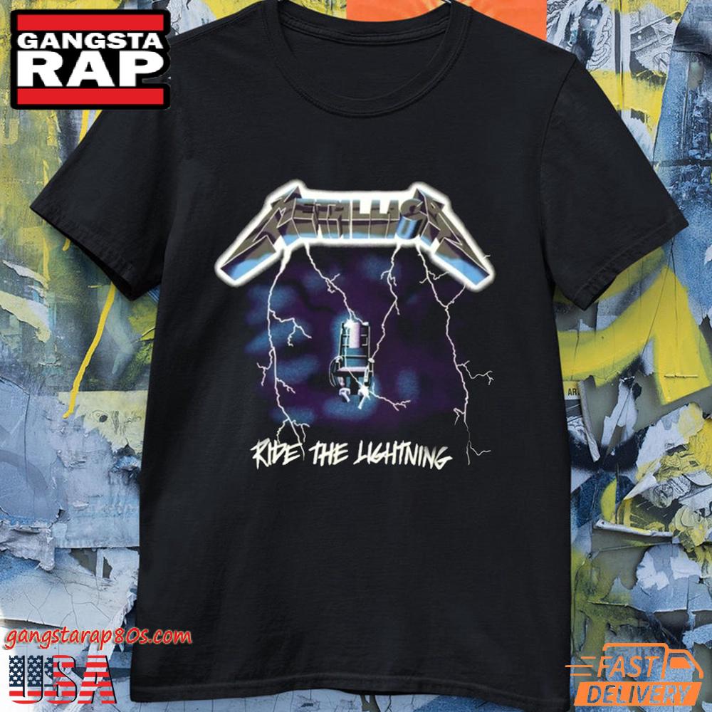 This official Metallica T-shirt proudly features the legendary Ride The Lightning album cover, complete with its famed electric chair and bolt design, a testament to the band’s audacious style. Ideal for reviving the spirit of the early ’80s heavy metal era, this shirt allows you to wear your musical passion with pride. The bold and vibrant design is sure to ignite conversations and connections with fellow metalheads.