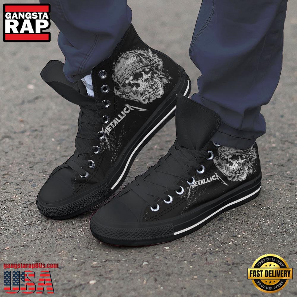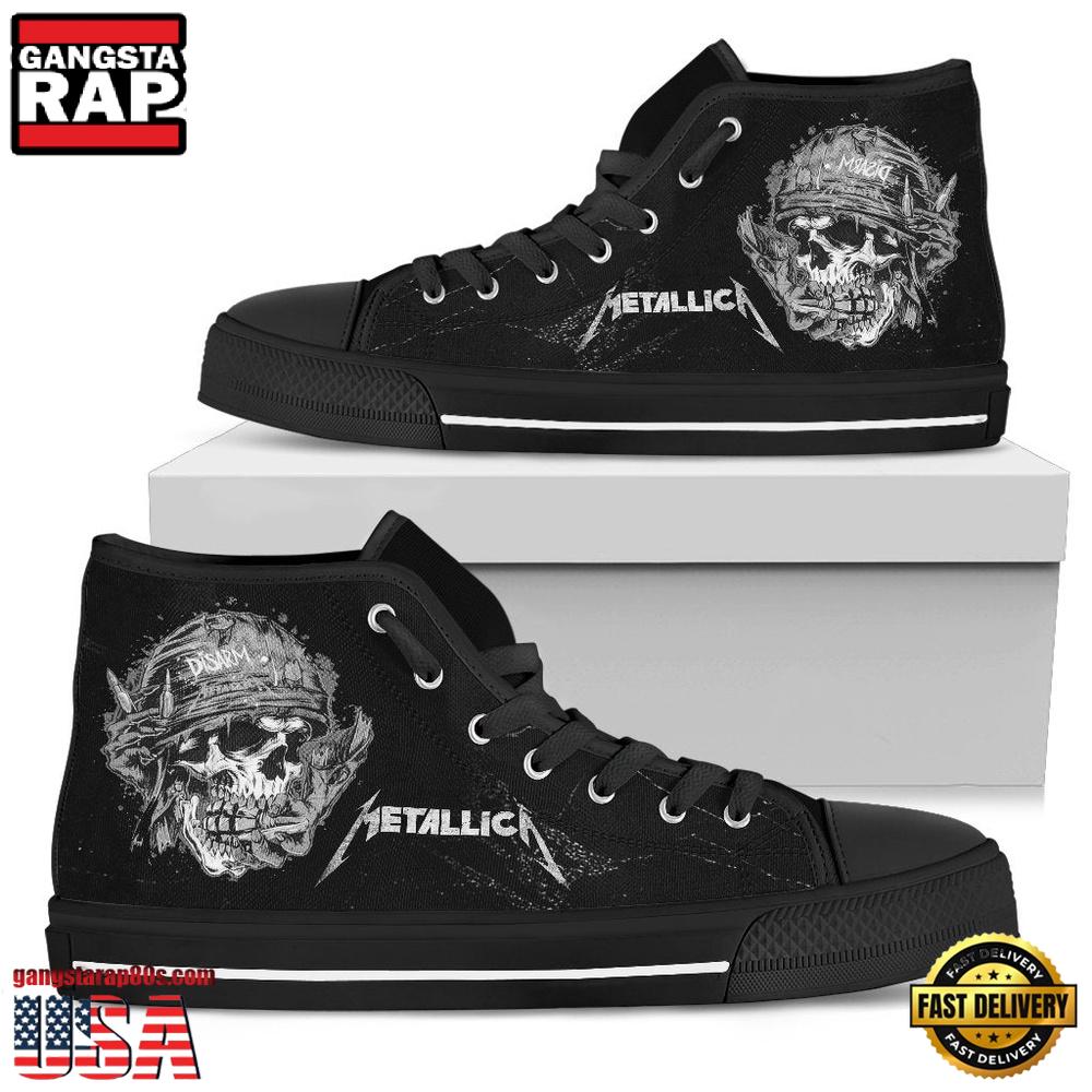Step into the world of rock and roll fashion with the Metallica Disarm Black Color High Top Canvas Sneakers Shoes. These sneakers are a must-have for any true Metallica fan, combining iconic style with modern comfort. Crafted to perfection, these shoes are designed to reflect the powerful energy and rebellious spirit of one of the world’s greatest bands.
