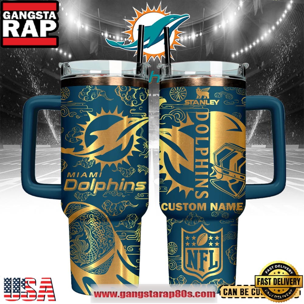 Miami Dolphins Custom Stanley Quencher Tumbler With Handle 40oz