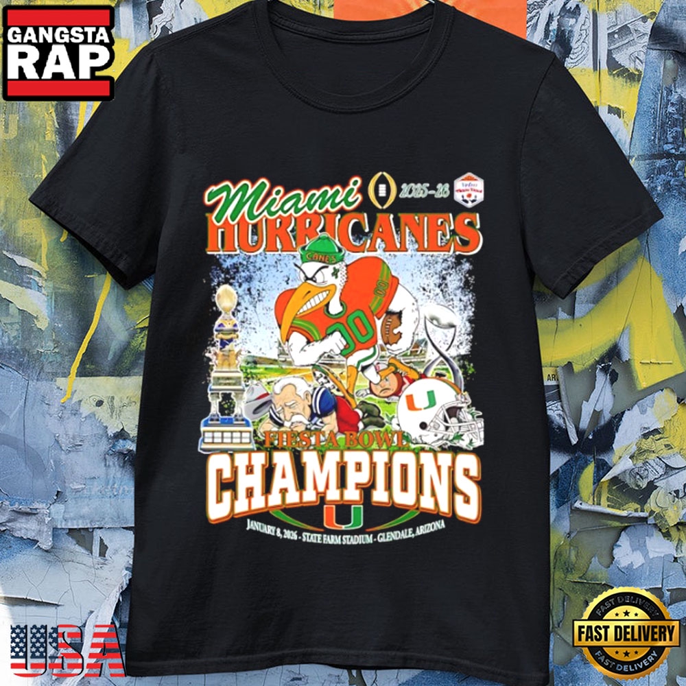 Miami Hurricanes 2025–2026 Fiesta Bowl Champions Mascot Helmet T-Shirt Introducing our 2D Shirt, a unique blend of style and creativity. Crafted from high-quality fabric, this shirt features a captivating 2D graphic design that adds a bold statement to your wardrobe. With its vibrant colors and intricate details, it offers a modern twist on classic apparel. Elevate your fashion game with our 2D Shirt, designed to turn heads and express your individuality in style.