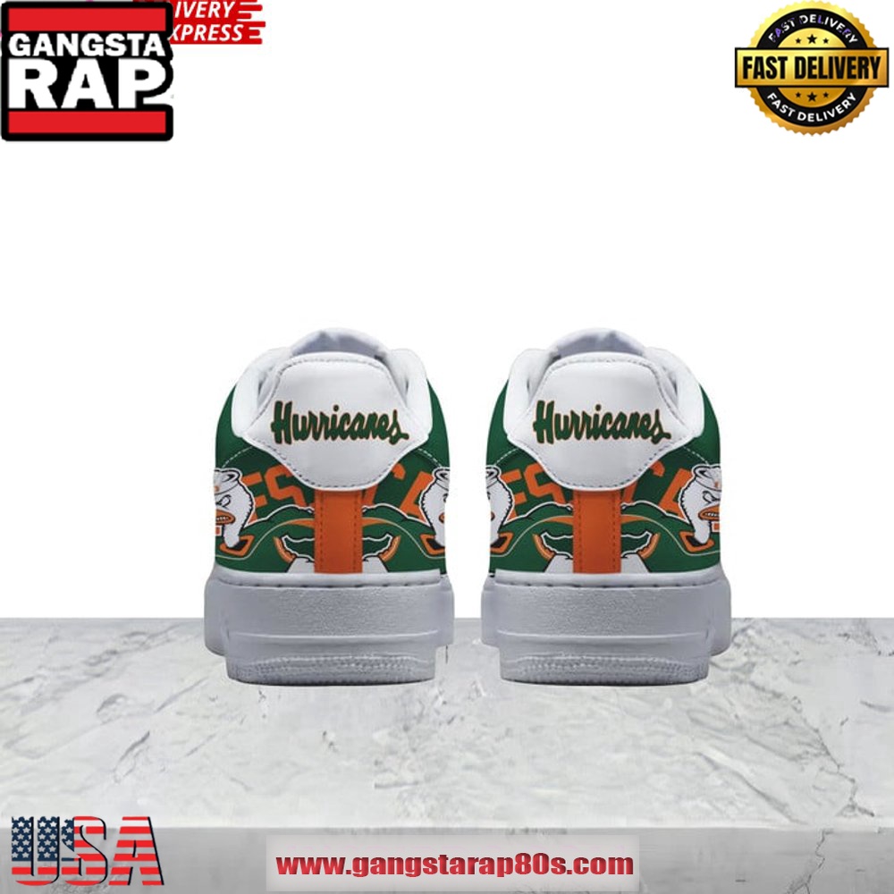 Experience the blend of emotional and functional benefits with the Miami Hurricanes Hype Limited Edition Air Force 1 Sneakers—where passion for your team meets top-tier athletic design. Celebrate each step with the pride and power that only these distinct sneakers can offer. Capture the trend of vibrant, athletic wear with a design that echoes the fervor of your spirit and sets you apart from the crowd.
