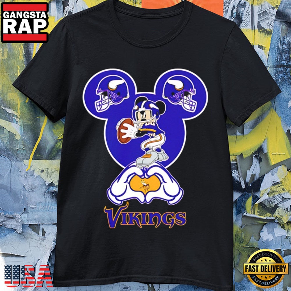 Photos Of Minnesota Vikings Mickey Mouse Love Hand Sign Football T-Shirt