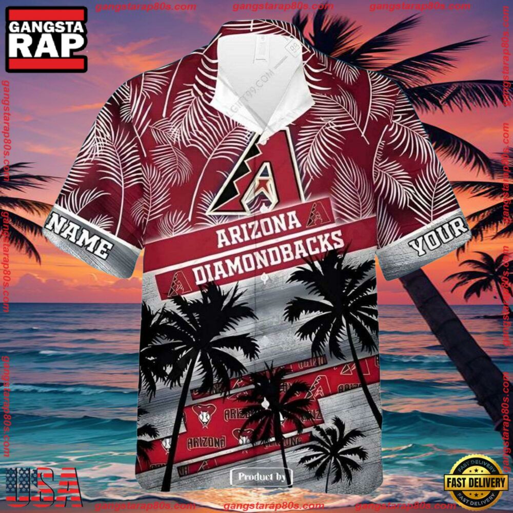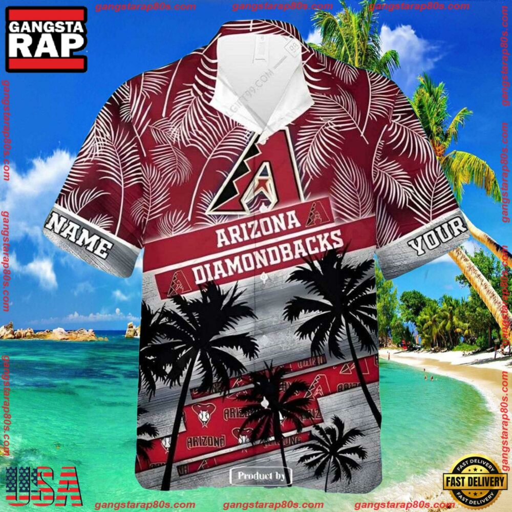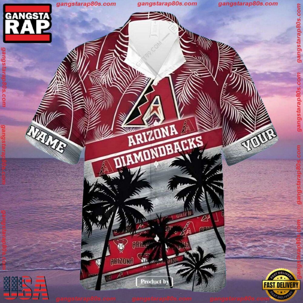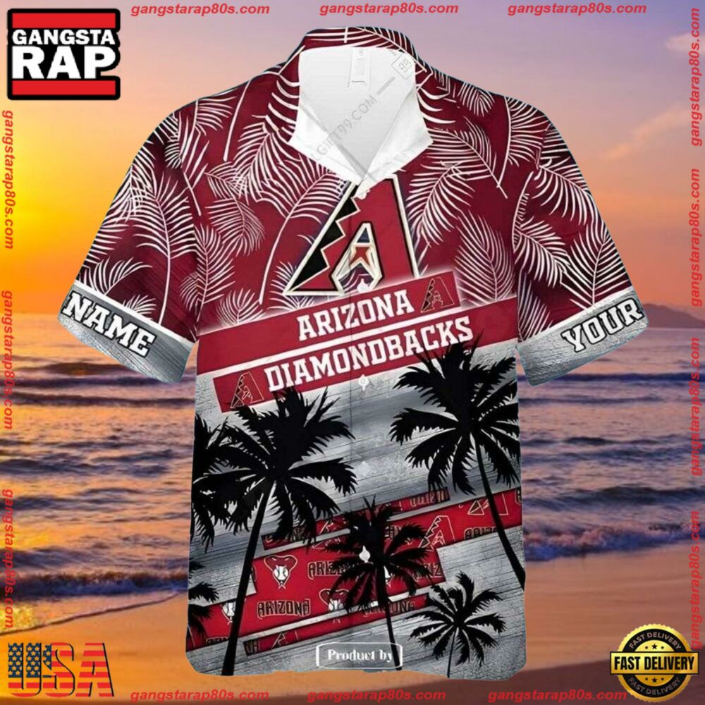 Step Out in Style with the MLB Arizona Diamondbacks Palm Trees Personalized Tropical Summer Hawaiian Shirt