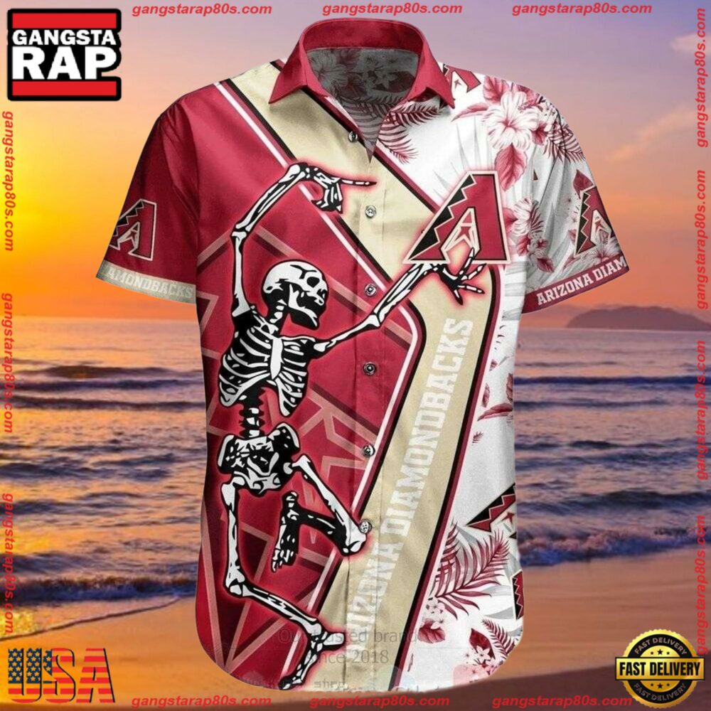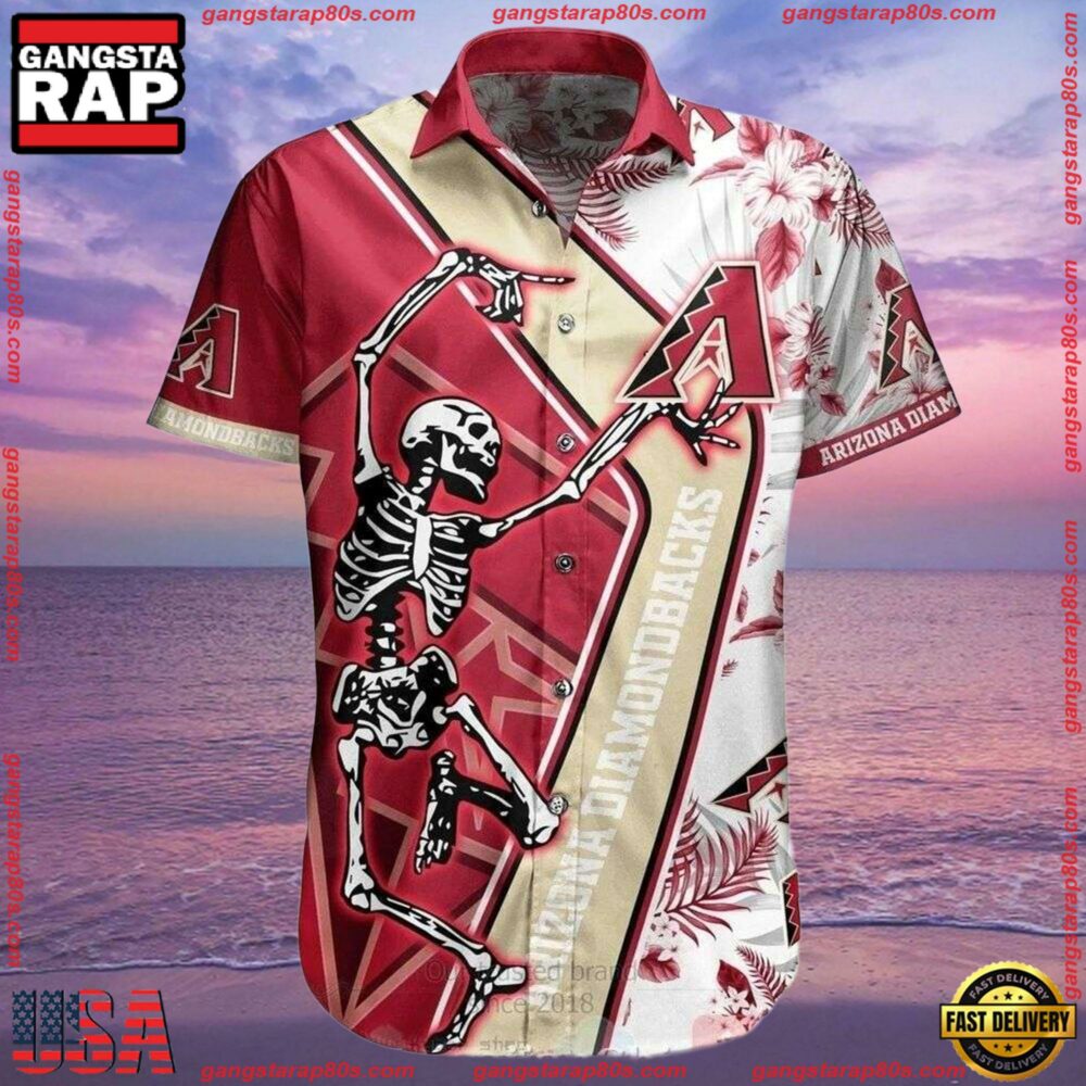 Photos Of MLB Arizona Diamondbacks Skeleton Batter Tropical Summer Hawaiian Shirt