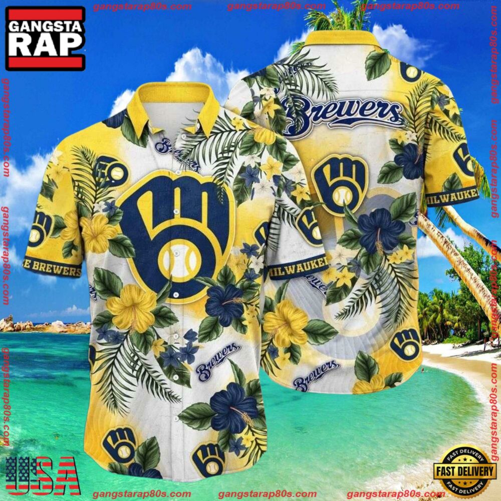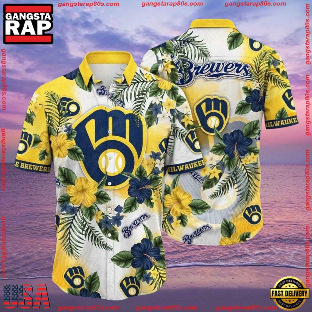 Photos Of MLB Brewers’ Tropical Elegance – Milwaukee Brewers Floral Hawaiian Shirt