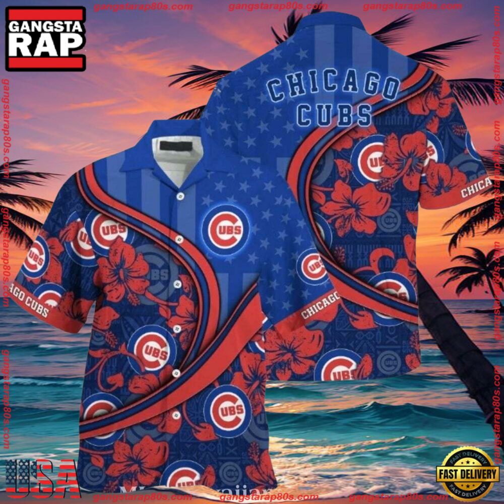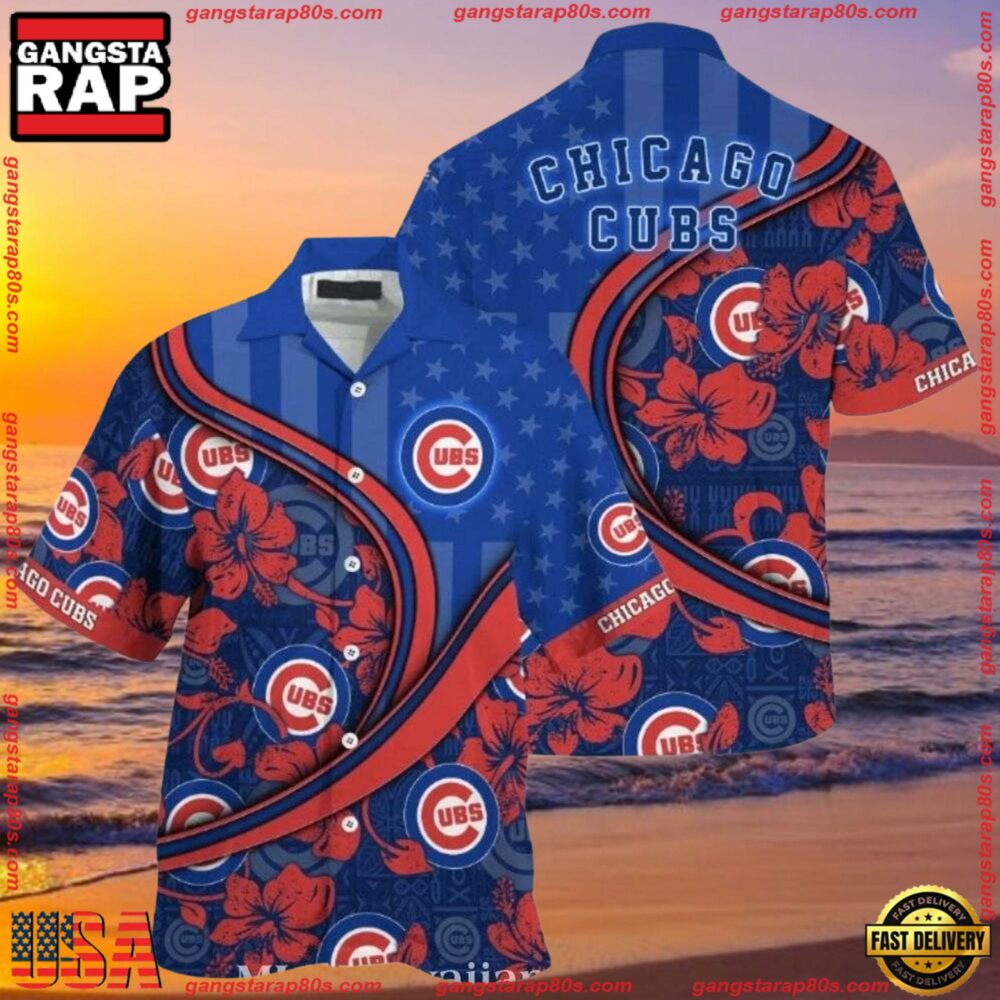 Photos Of MLB Chicago Cubs All-Star Hawaiian Shirt – Patriotic Floral Stripes