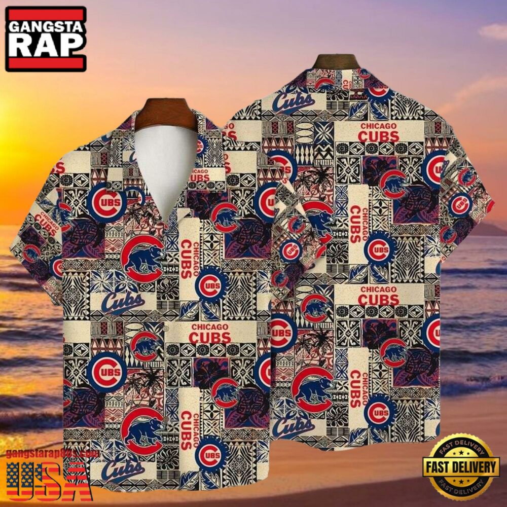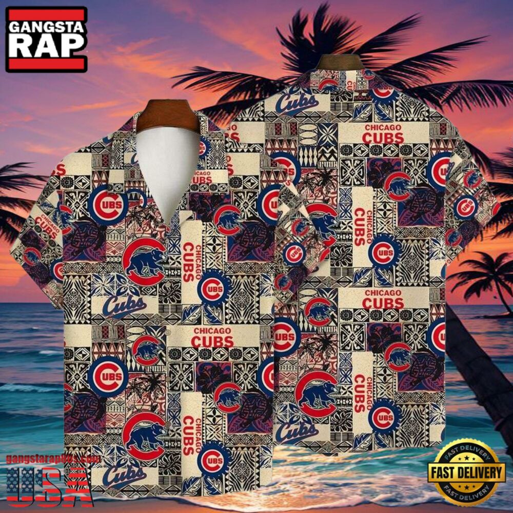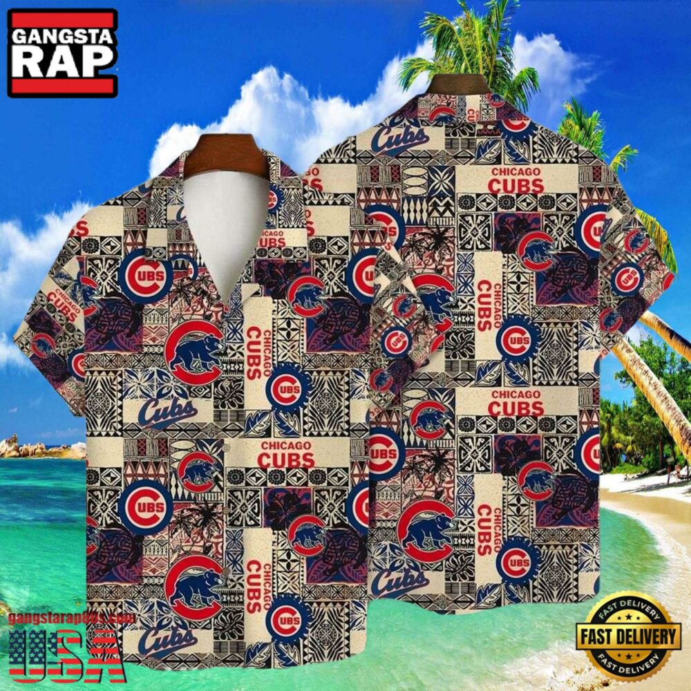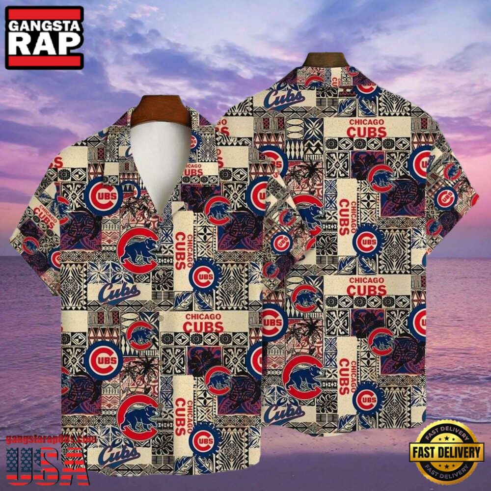 Photos Of MLB Chicago Cubs Vintage Tribal Print Aloha Hawaiian Shirt