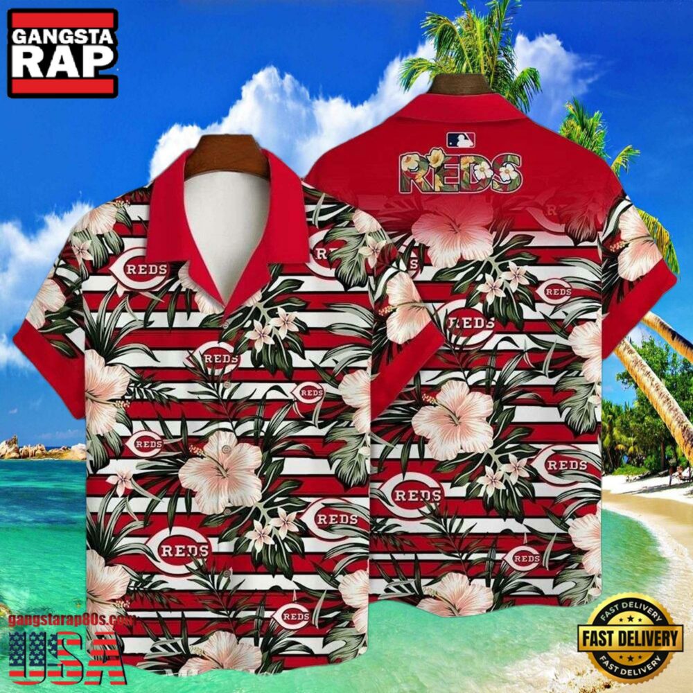 This shirt serves as both a stylish fashion statement and a testament to your team loyalty. The bold hibiscus design and Reds logo create an exciting contrast, making it suitable for both baseball enthusiasts and anyone looking to add a touch of tropical flair to their wardrobe. Ideal for summer outings, vacations, or simply showcasing team pride in a fashionable way, this shirt resonates with current trends in sporty-casual fashion.
