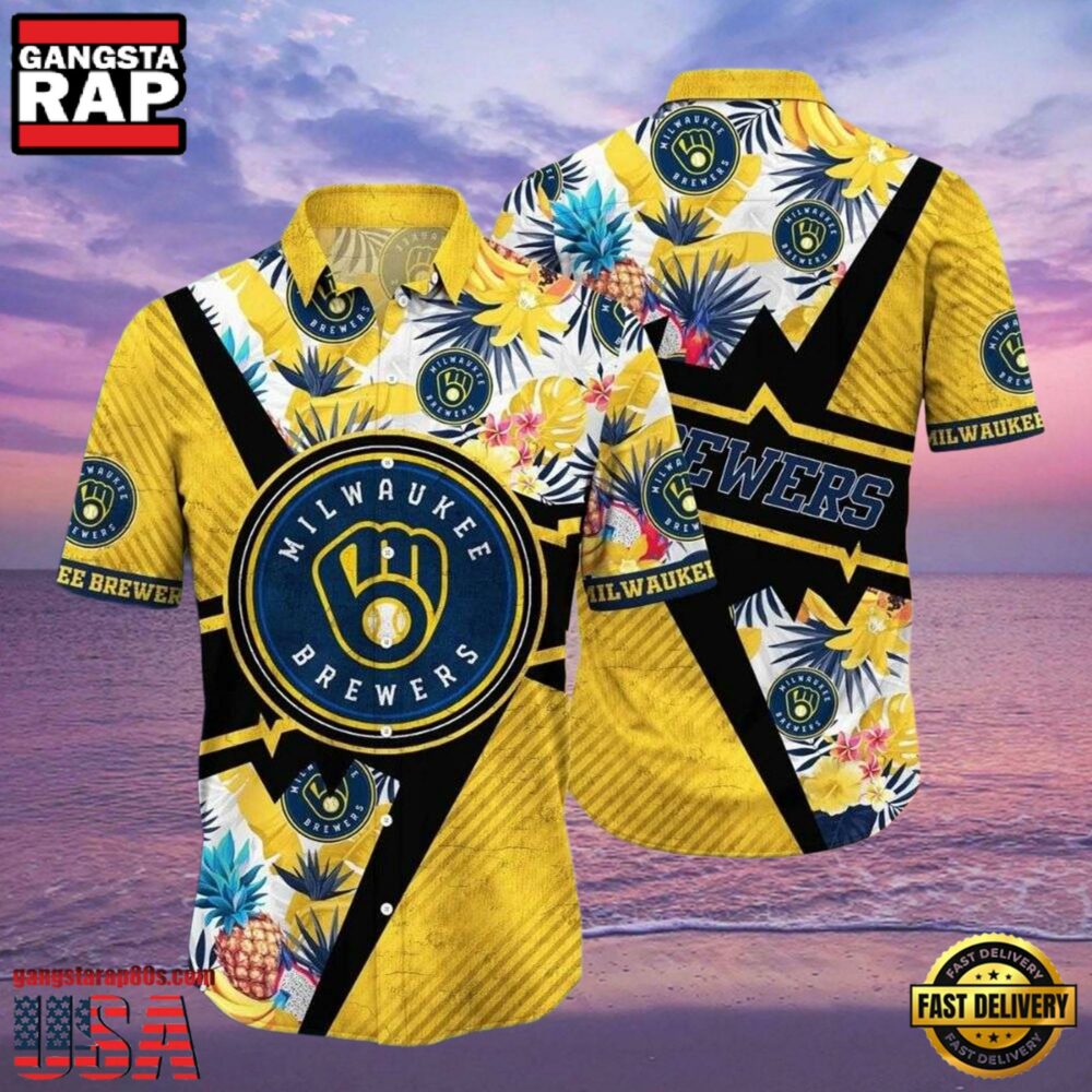 - MLB Brewers Game Day – Milwaukee Brewers Floral Aloha Shirt