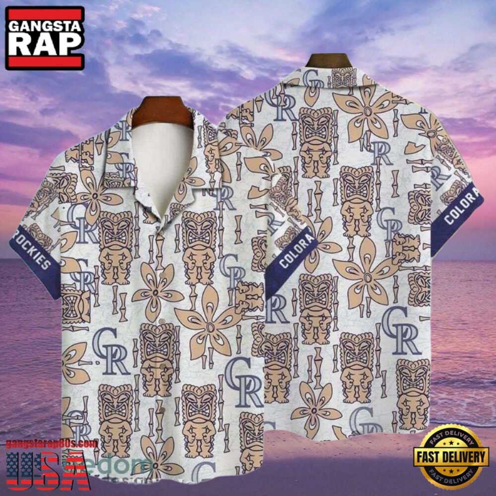 Photos Of MLB Colorado Rockies Beige Tribal Pattern Aloha Shirt