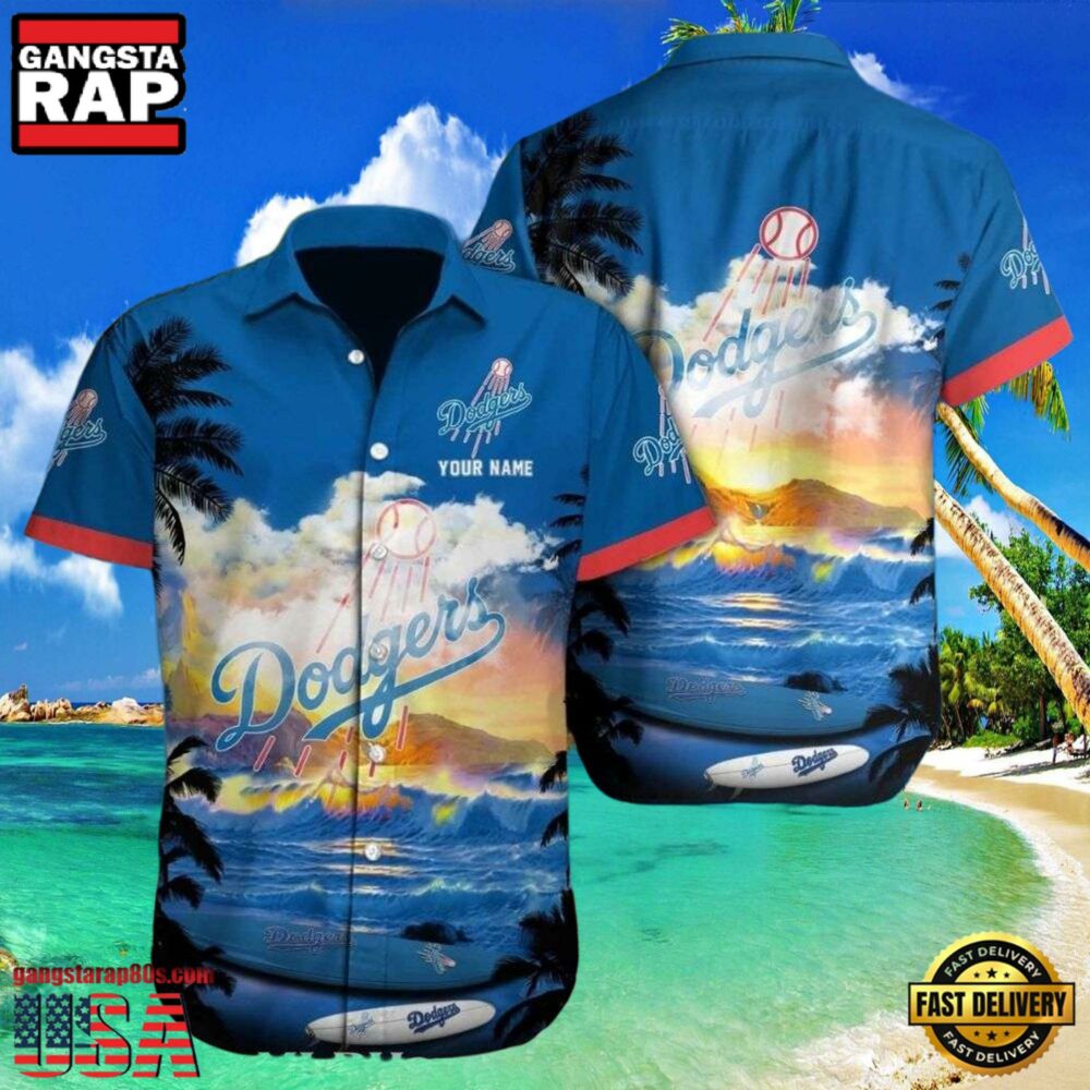 MLB Dodgers Sunset Palms Customizable Hawaiian Shirt