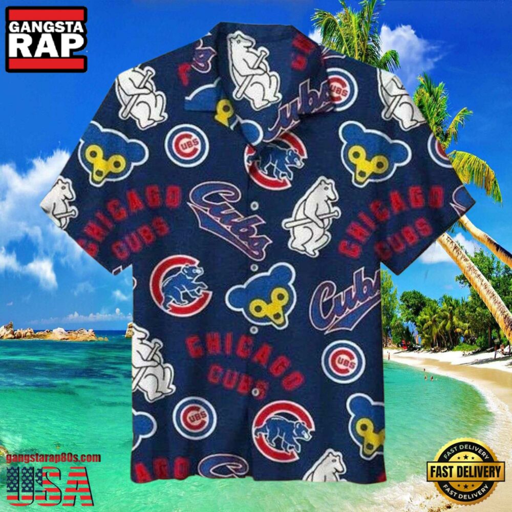 Photos Of MLB Iconic Chicago Cubs Emblems Navy Aloha Hawaiian Shirt Chicago Cubs Aloha Wear