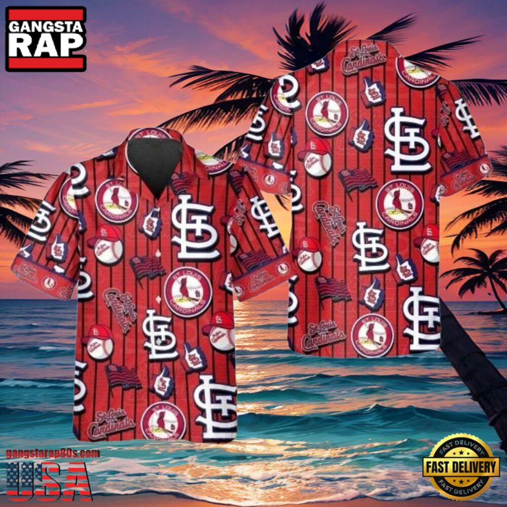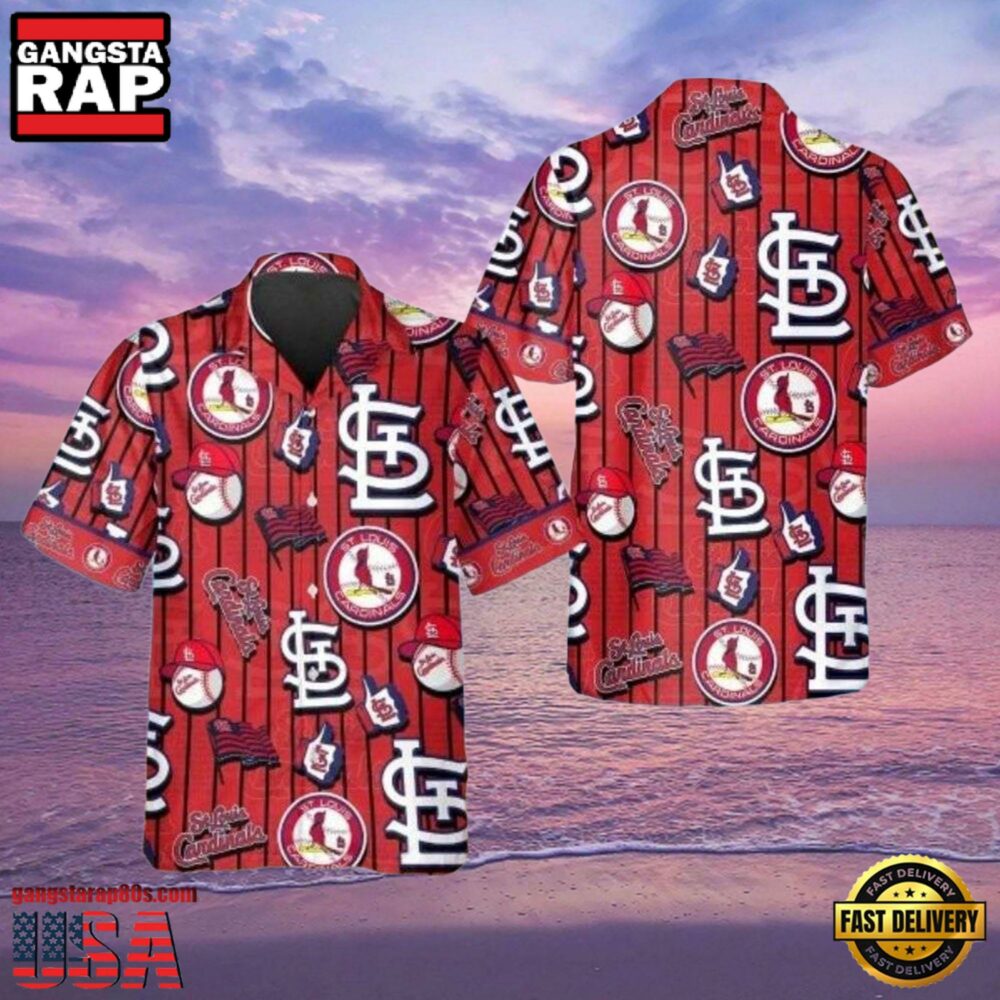 Photos Of MLB Iconic Logo Play Red St. Louis Cardinals Aloha Hawaiian Shirt