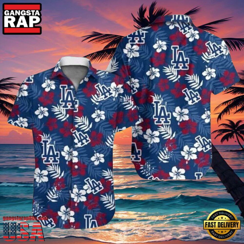 Photos Of MLB LA Dodgers Floral Emblem Aloha Shirt Classic Red And Blue