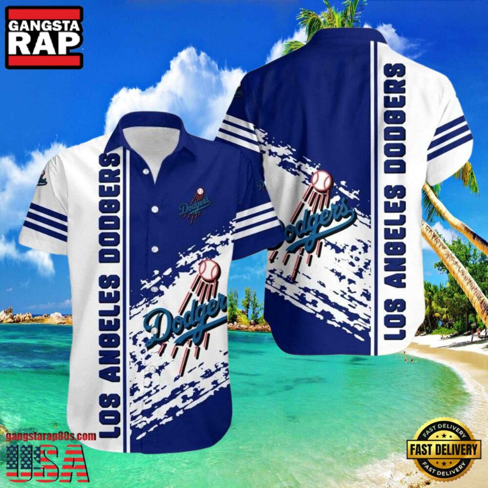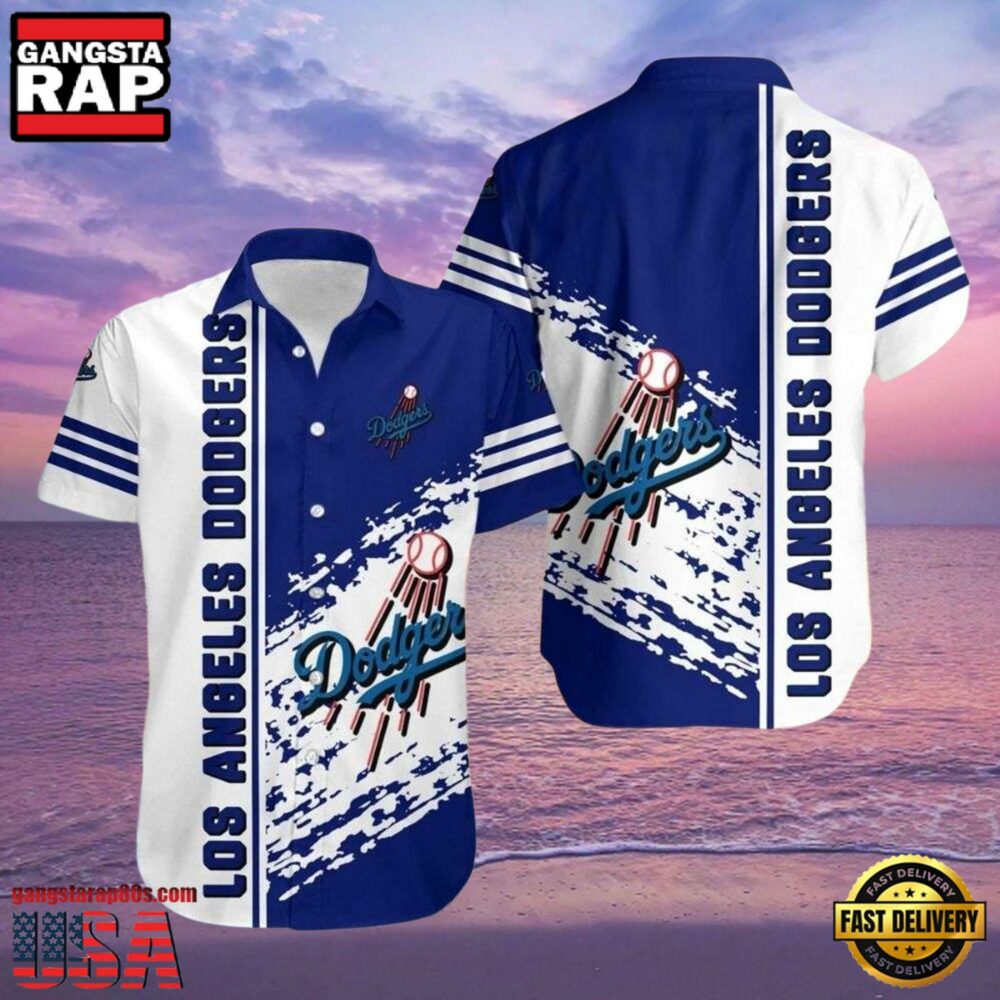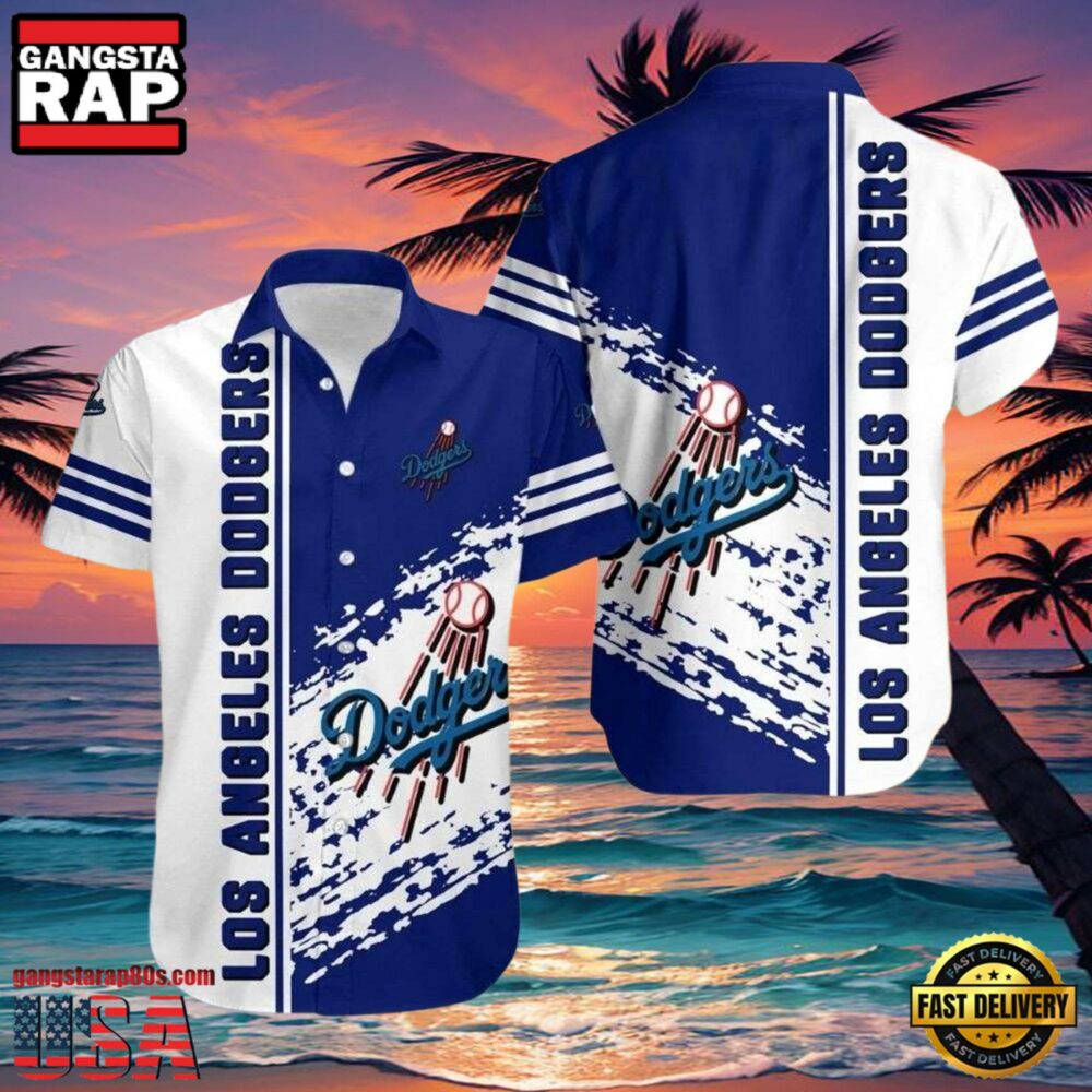 Photos Of MLB Los Angeles Dodgers Splash White Stripe Aloha Shirt Fresh Blue Waves