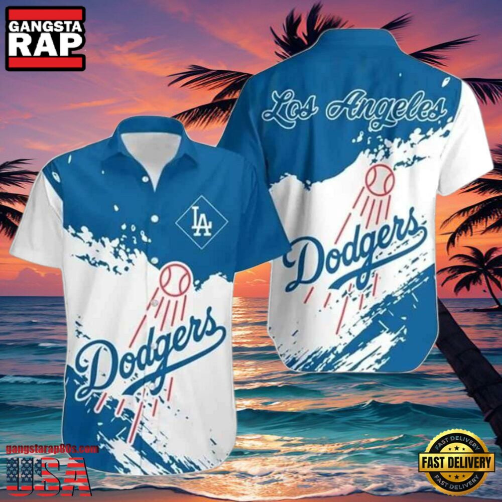 Photos Of MLB Los Angeles Dodgers Wave Splash Style Hot Trending Summer Hawaiian Shirt Dynamic Blue Contrast