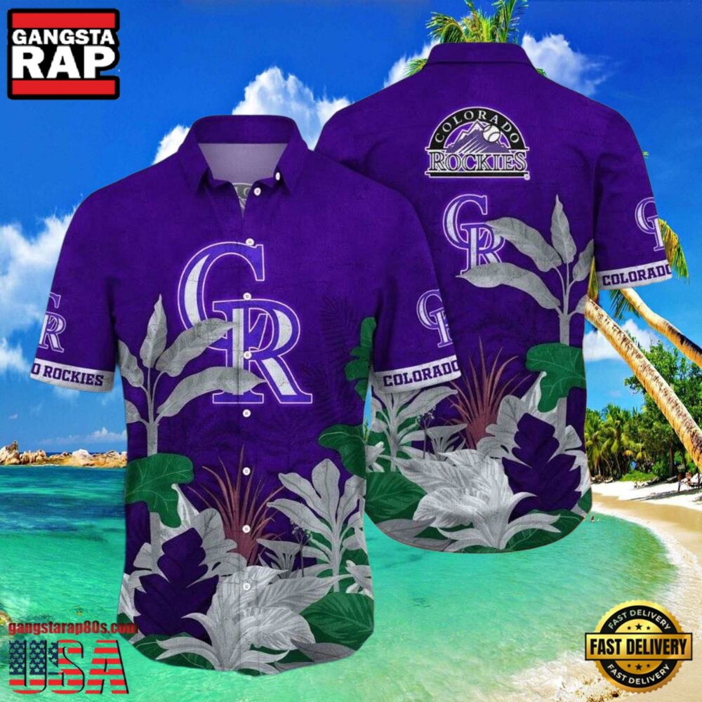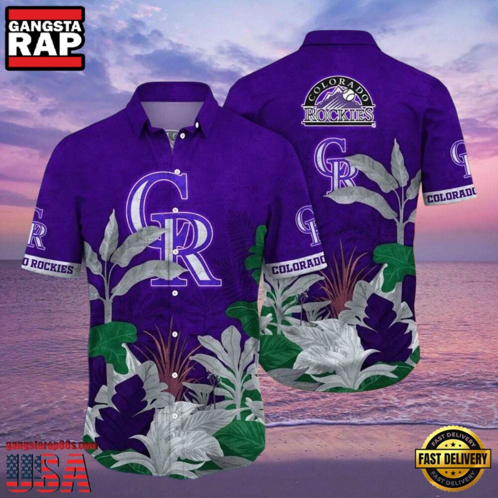 Photos Of MLB Majestic Purple Foliage – Colorado Rockies Tropical Aloha Shirt