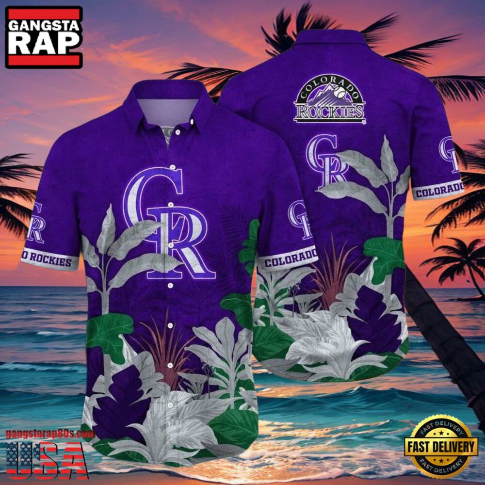 Experience Summer Vibes with the MLB Majestic Purple Foliage – Colorado Rockies Tropical Aloha Shirt