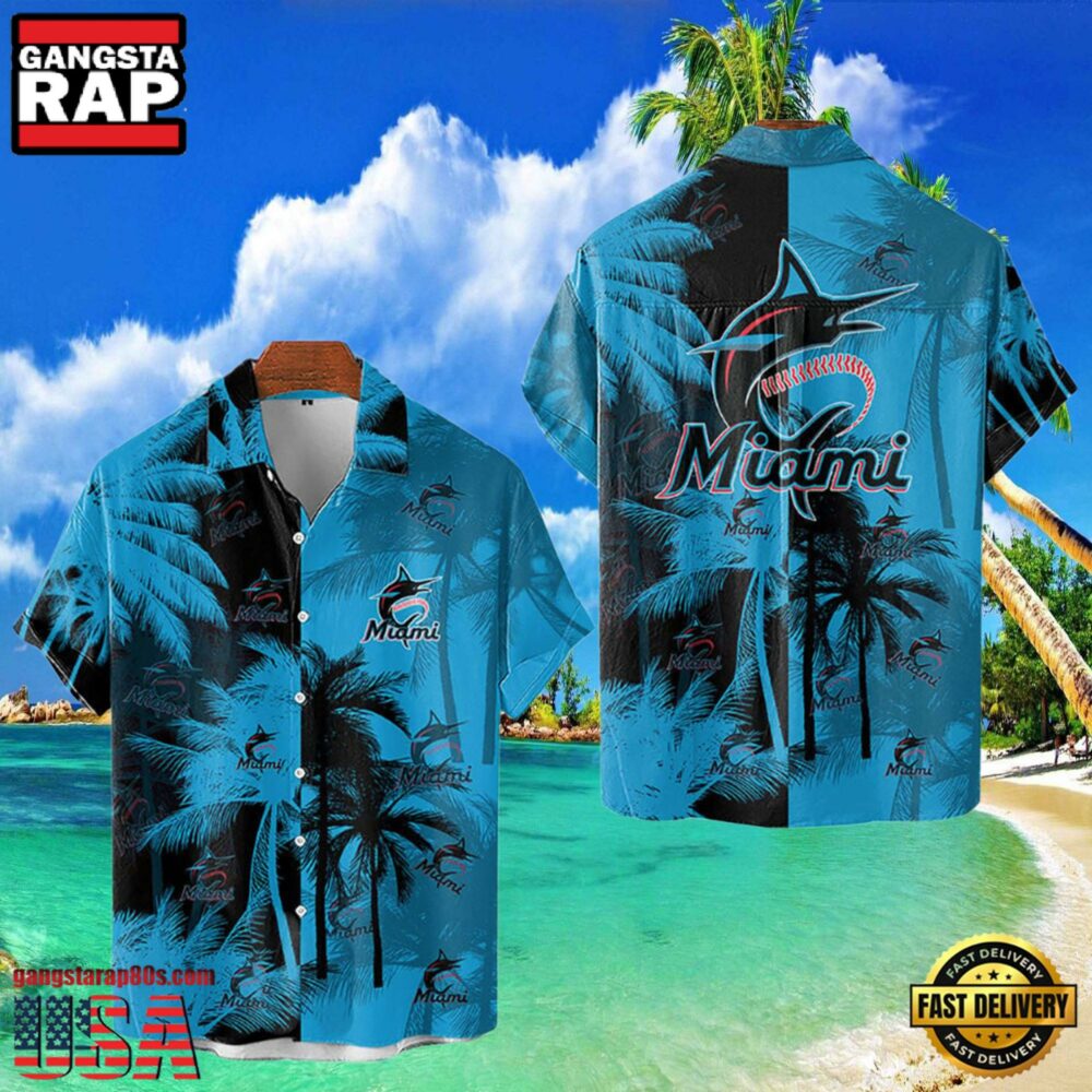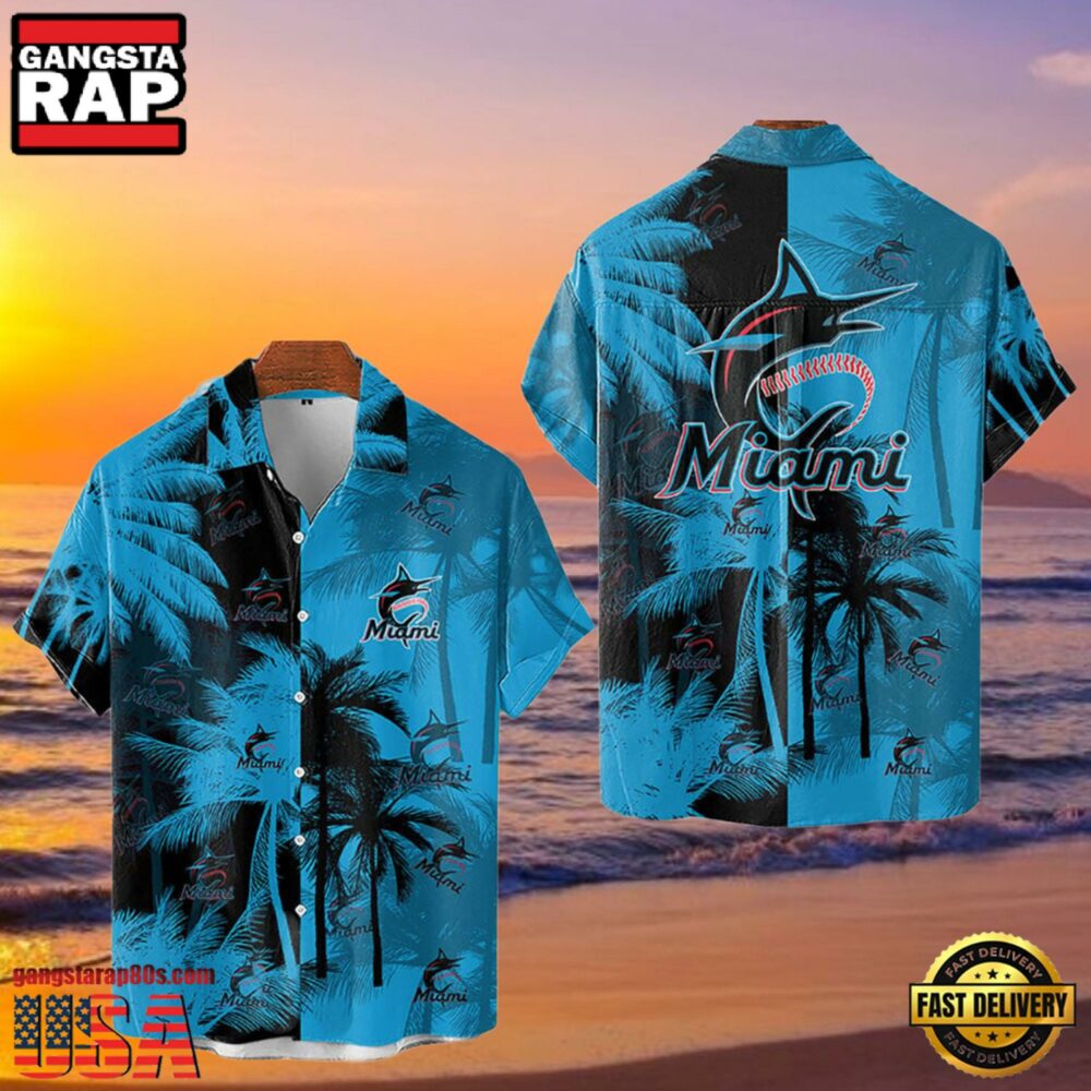 MLB Miami Marlins Tropical Palm Trees Aloha Hawaiian Shirt