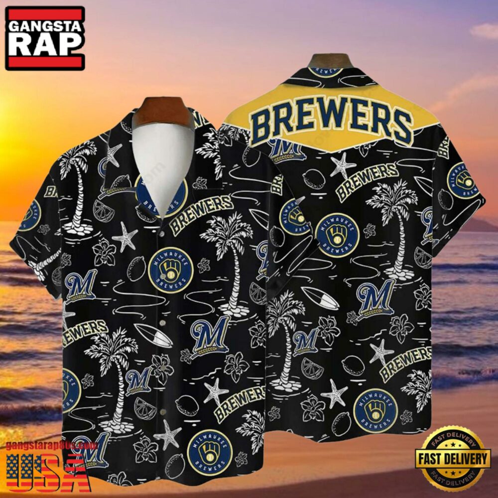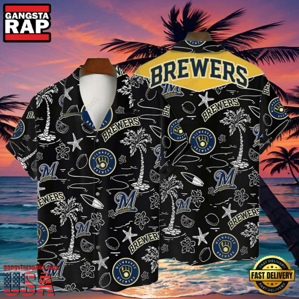 MLB Milwaukee Brewers Tropical Palm Trees Hot Summer Hawaiian Shirt