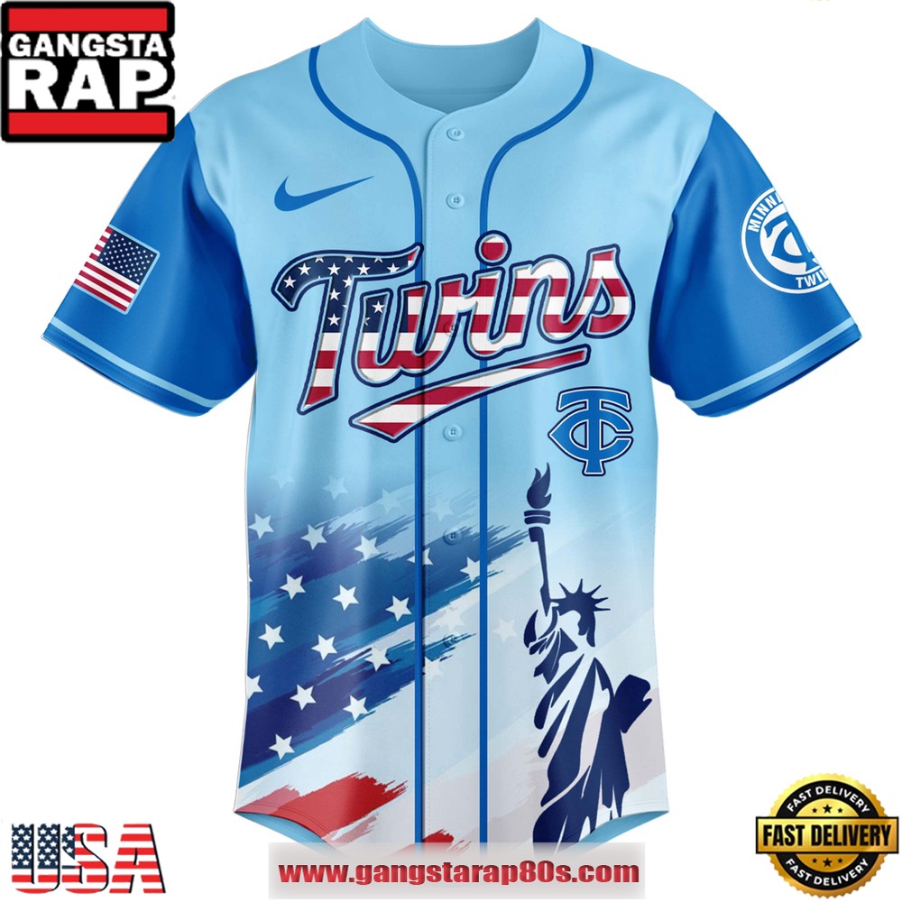 These jerseys are a must-have for die-hard Minnesota Twins supporters and collectors alike, making them an ideal gift for the summer season. By wearing these jerseys, fans can showcase their team pride and patriotism simultaneously, making them a favorite among Twins fans who appreciate both quality and style. Available in a limited run, these jerseys are not only a testament to your support for the team but also a collectible piece of sports history.