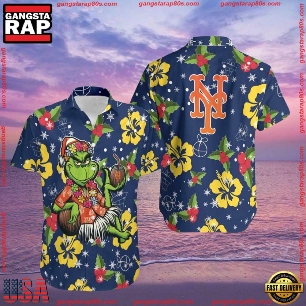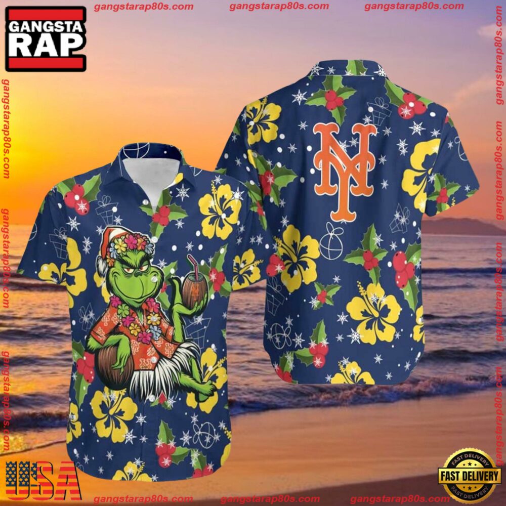 Incorporating timeless features and a quirky graphic, the Aloha Grinch shirt is not just a trend-setting piece but also a memento of your undying team loyalty. Aimed at the Mets’ fanbase, who appreciates humor and originality, it aligns with current fashion trends that spotlight both individuality and allegiance. The blend of sporting pride and festive joy makes this shirt a must-have for any NY Mets enthusiast looking to make a statement.