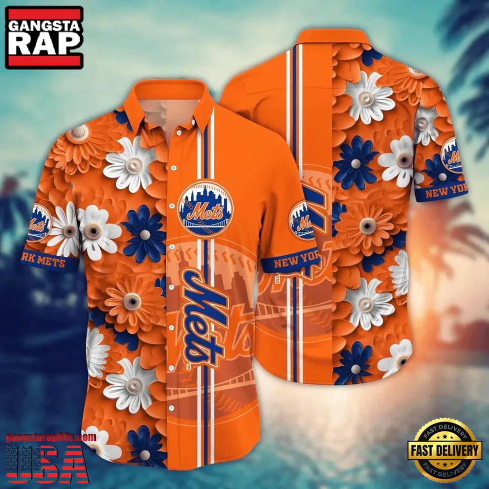 Elevate your collection with this limited edition piece today, and make waves wherever you go. Embrace the joy of fashion fused with sport, and let your allegiance shine with the unmistakable design of the New York Mets Flower Palm Tree Hawaiian Shirt!