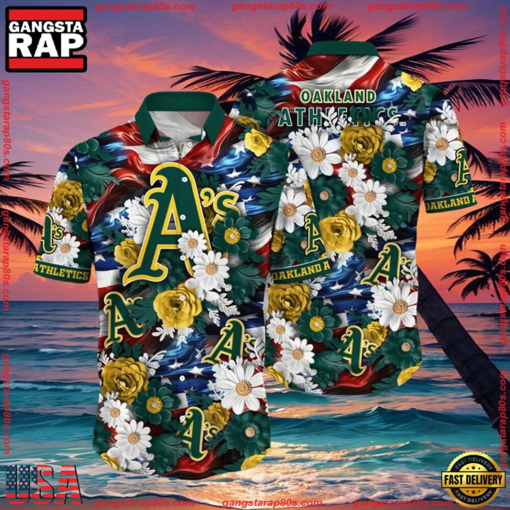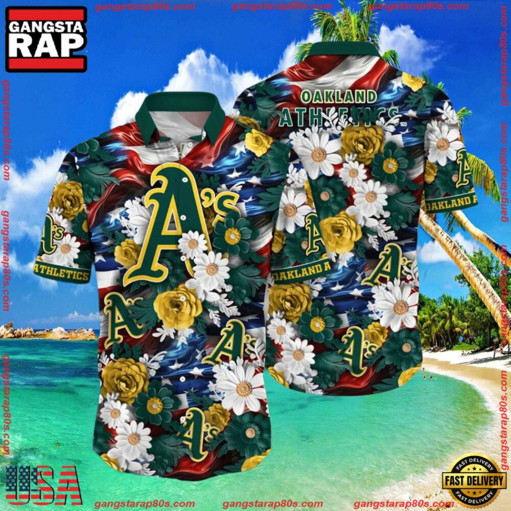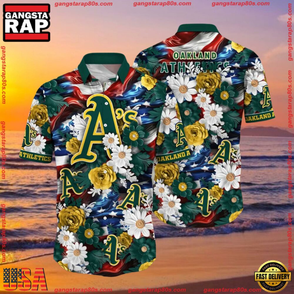 Ideal for the modern sports aficionado who appreciates a stylish twist on traditional sports apparel, this shirt is also a great gift choice for anyone who loves the dual appeal of sporting passion and Hawaiian flair. Dive into the current trend by embracing this fusion of sports and style, and let your Oakland Athletics fandom shine through.