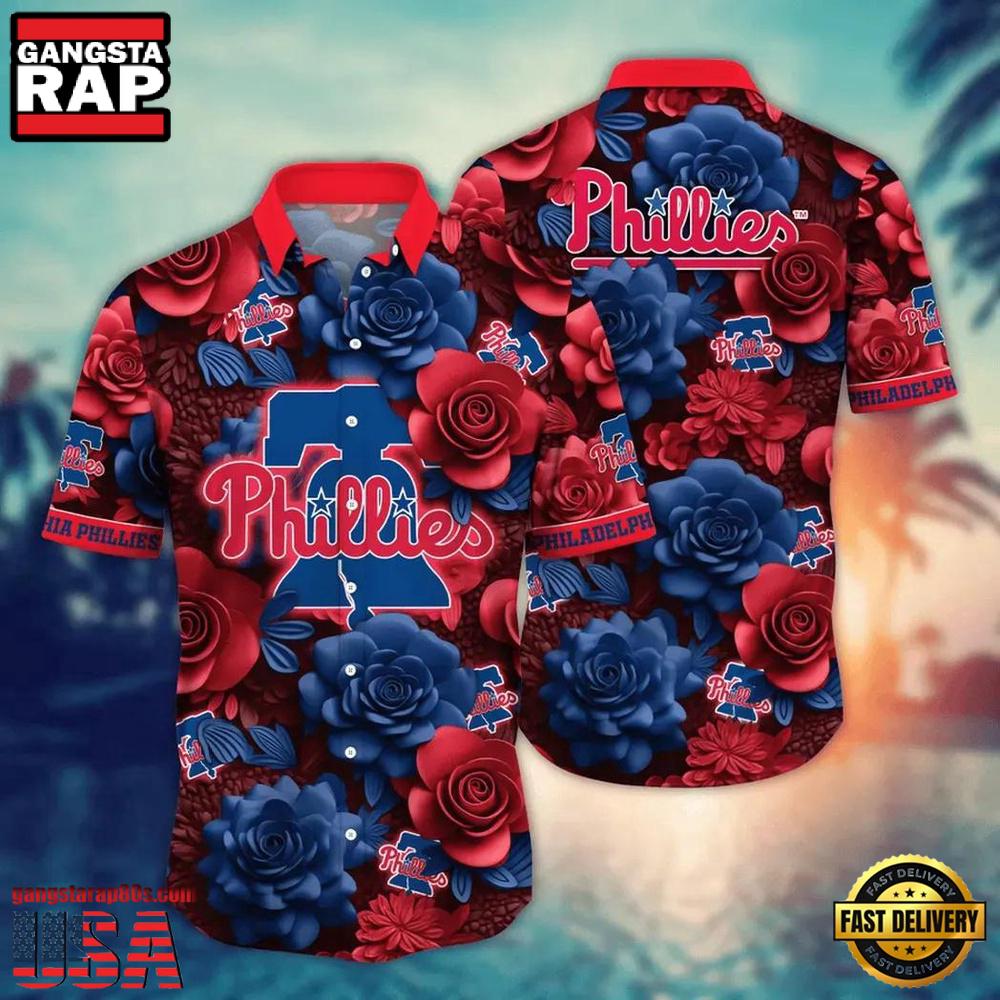 - MLB Philadelphia Phillies Crimson Floral Fun Philadelphia Aloha Hawaiian Shirt