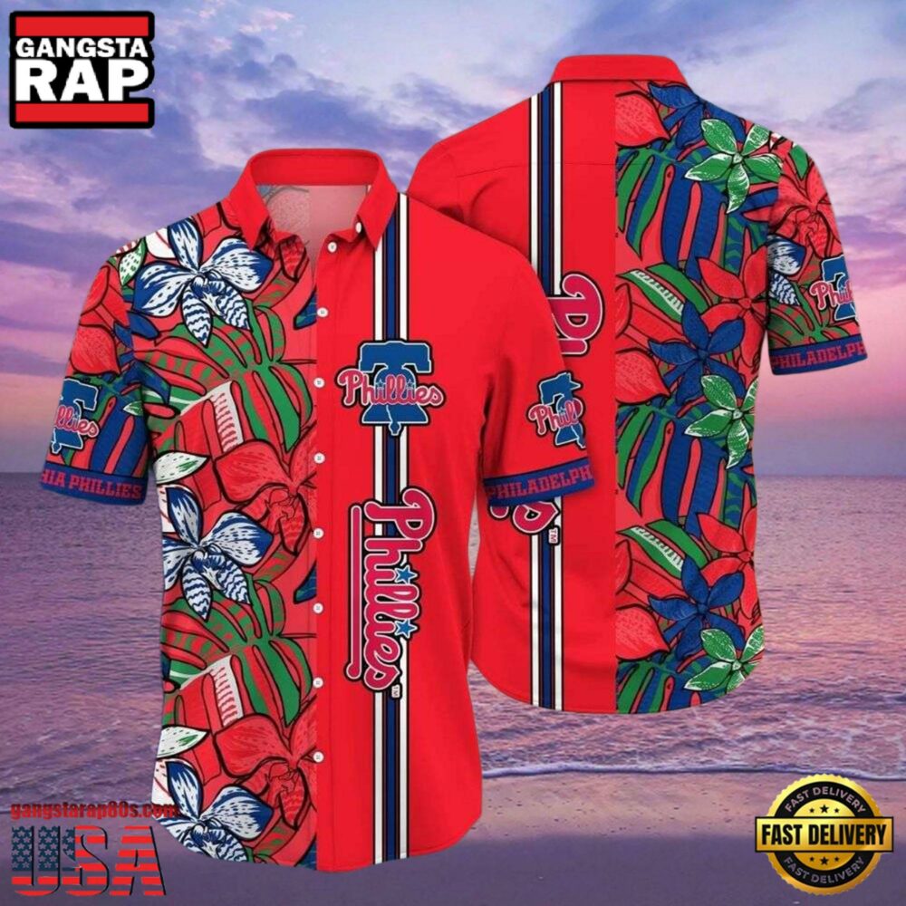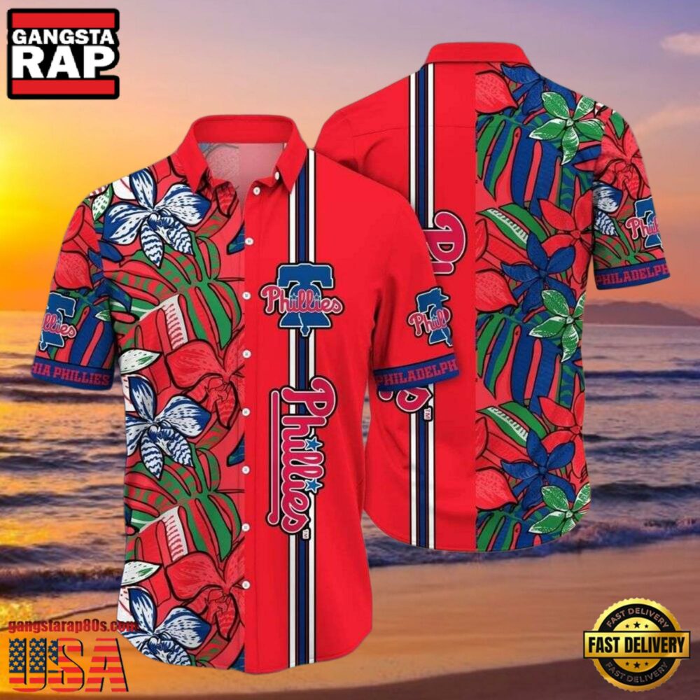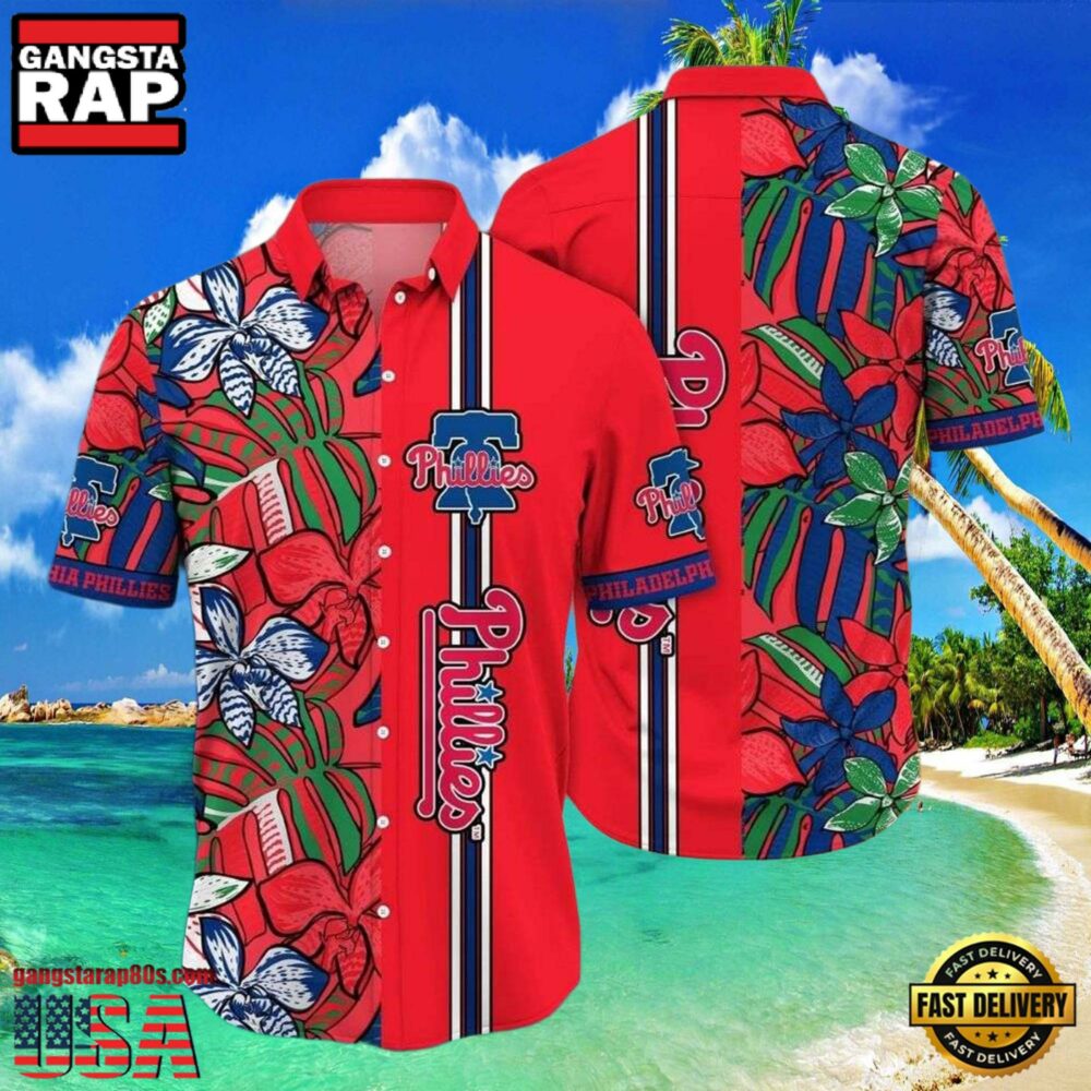 Photos Of MLB Philadelphia Phillies Red Botanical Bliss Aloha Hawaiian Shirt