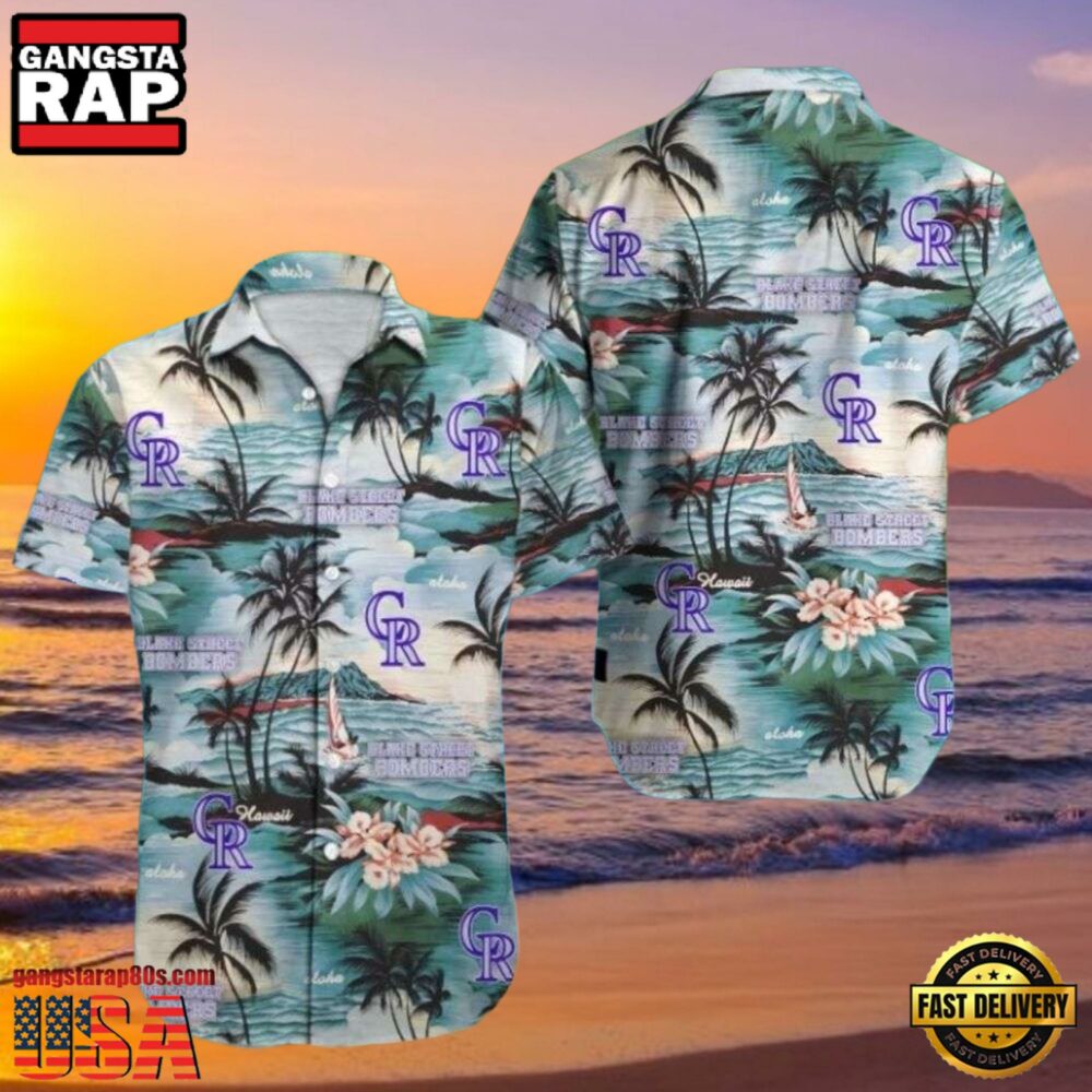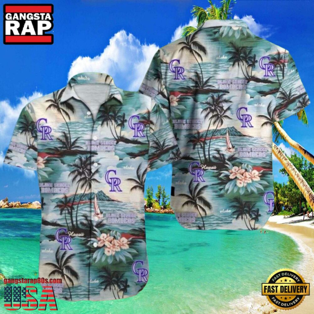 Dive into the sun-dappled bliss of the Rockies while draped in an ensemble that brings together the rich legacy of MLB apparel 2023 with the timeless elegance of a tropical Hawaiian shirt. The enchanting serene palms and vibrant sunset hues illustrated on this shirt encapsulate the quintessence of a hot summer day, making it an outstanding choice for both leisure wear and fan gatherings.