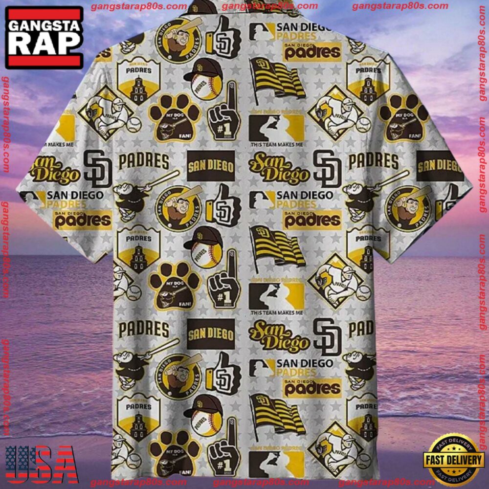 With its vibrant Hawaiian print that features the iconic Padres logo, this shirt pays homage to the team’s rich history while incorporating a modern twist. Made with high-quality materials, it offers breathability and durability, ensuring you stay cool even during the hottest of games. The aloha design signifies warmth and friendliness, embodying the spirit of Hawaii and the camaraderie among Padres fans.