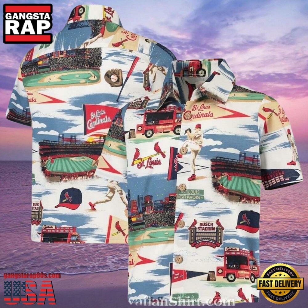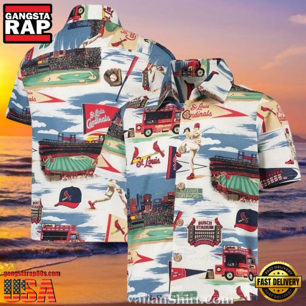 Elevate Your Fan Gear with the MLB St. Louis Cardinals Stadium Graphic Aloha Hawaiian Shirt