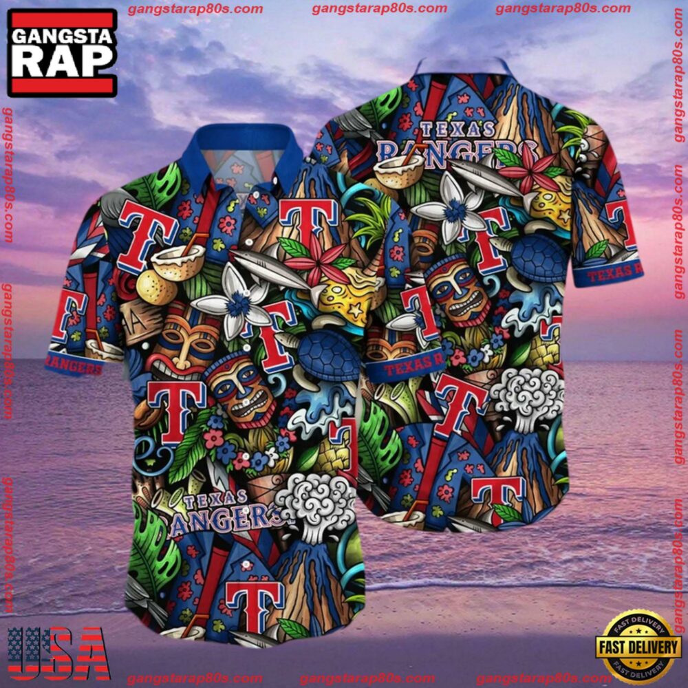 - MLB Texas Rangers Flower Aloha Hawaiian Shirt, Summer Football