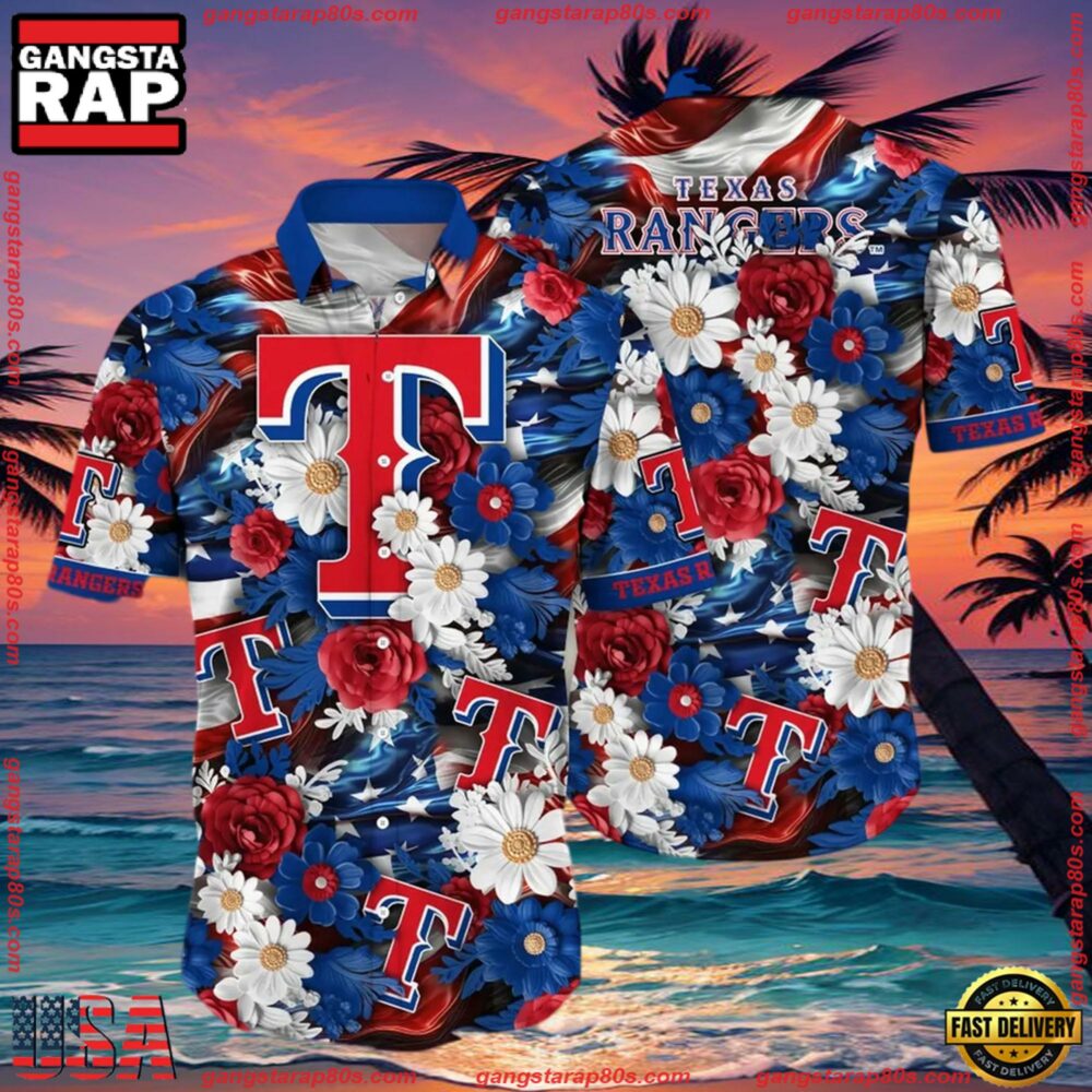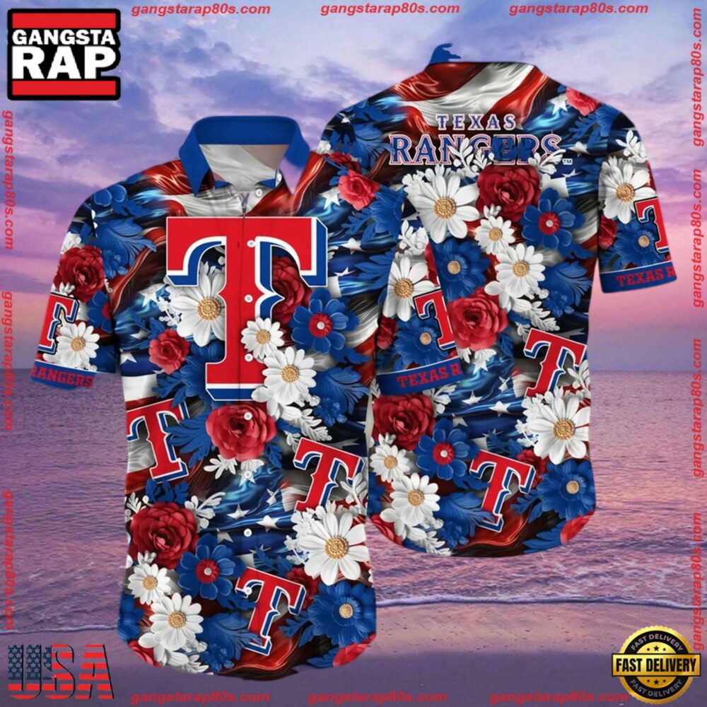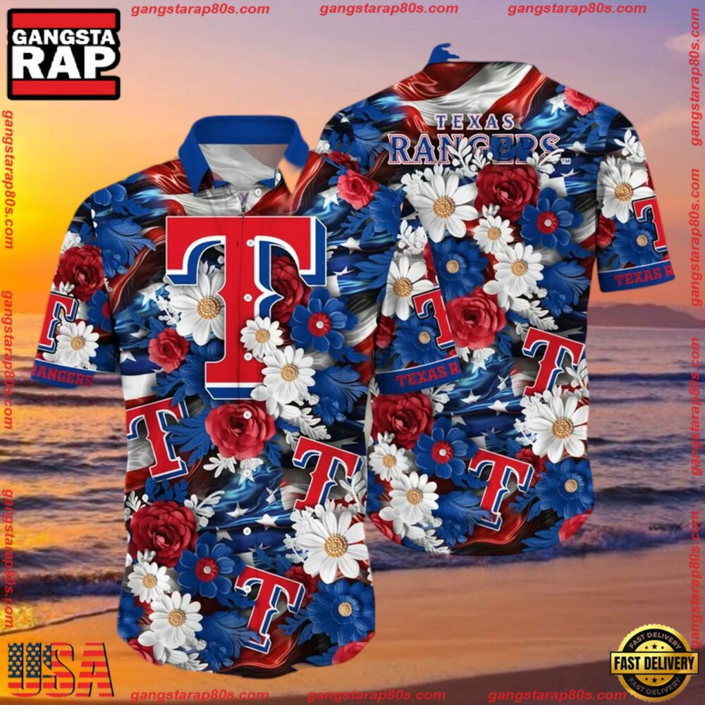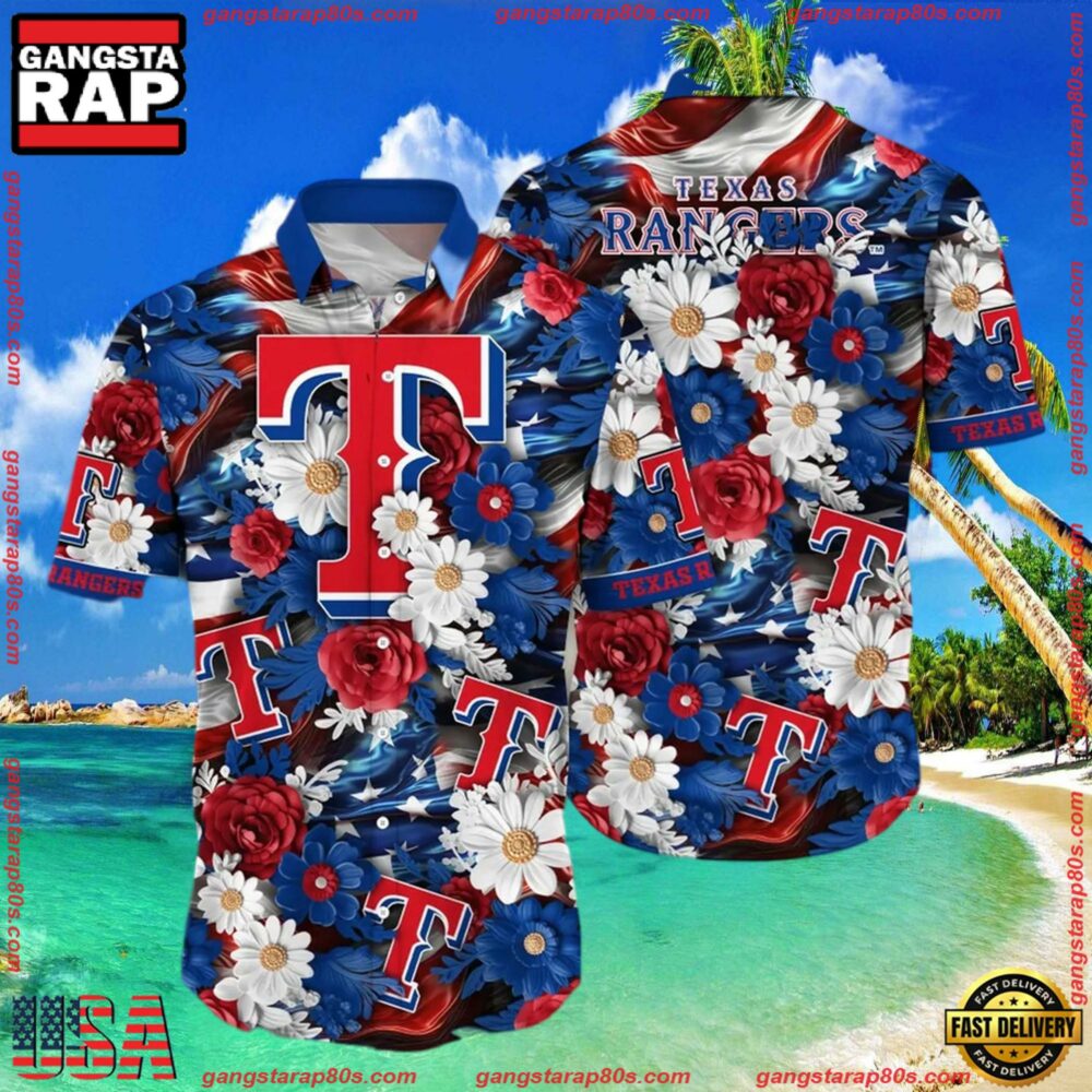- MLB Texas Rangers Flower Aloha Hawaiian Shirt, Summer Football