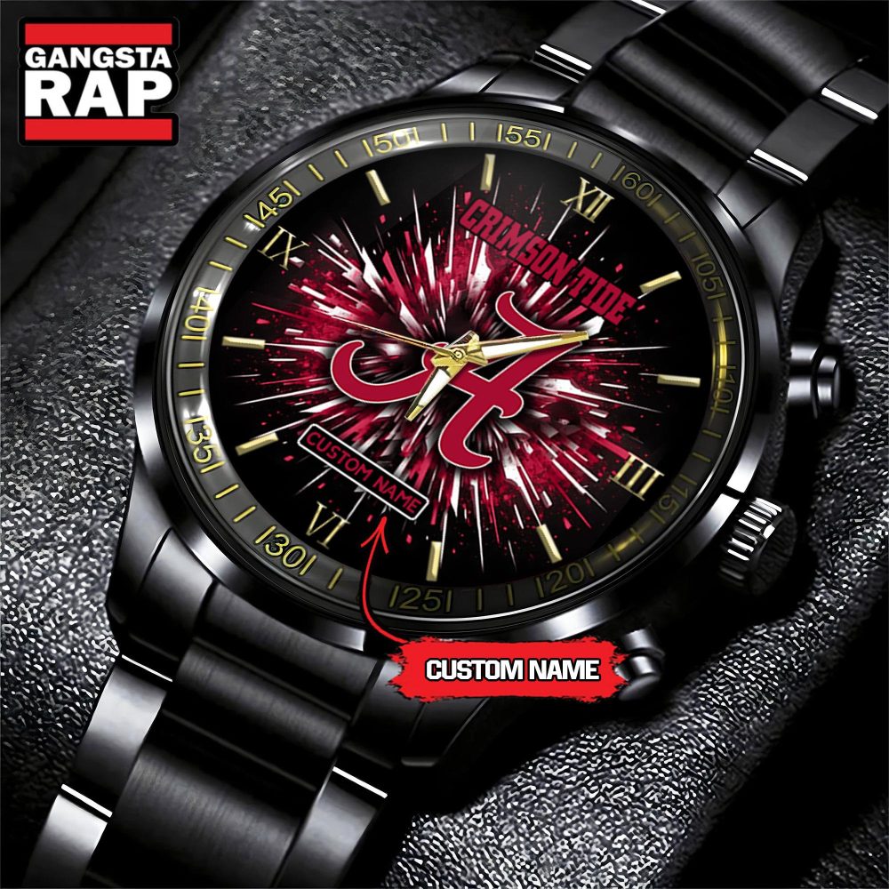 Step onto the field with confidence and style in the NCAA Alabama Crimson Tide Football Team Logo Design Black Watch. This striking accessory embodies the spirit and tradition of the Alabama Crimson Tide, enhancing your game day experience and showcasing your unwavering support for one of the premier football teams in the NCAA.