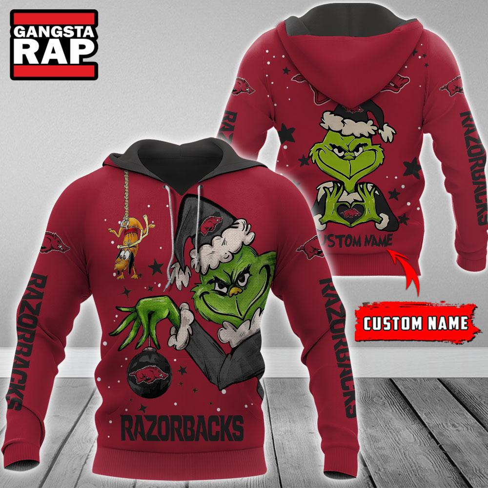 Photos Of Free NCAA Arkansas Razorbacks Football Team The Grinch Christmas Hoodie