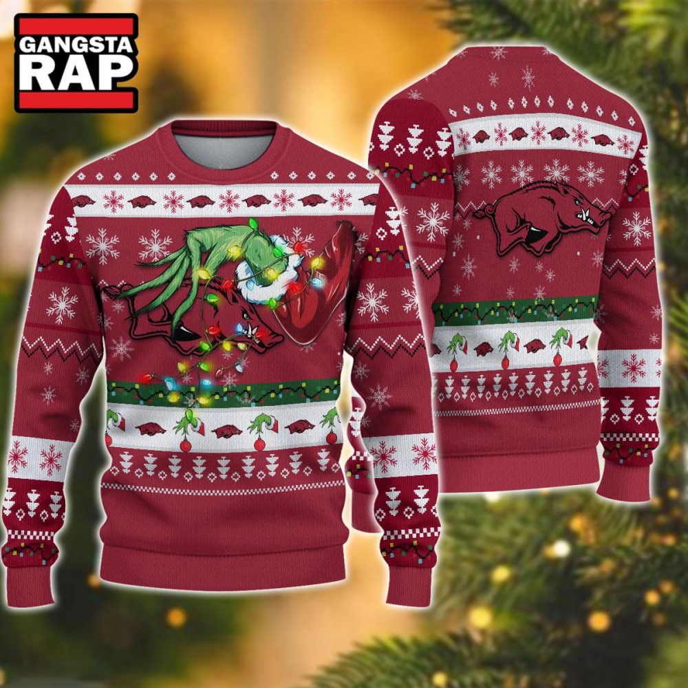 NCAA Arkansas Razorbacks Grinch Hand Ugly Christmas Sweater