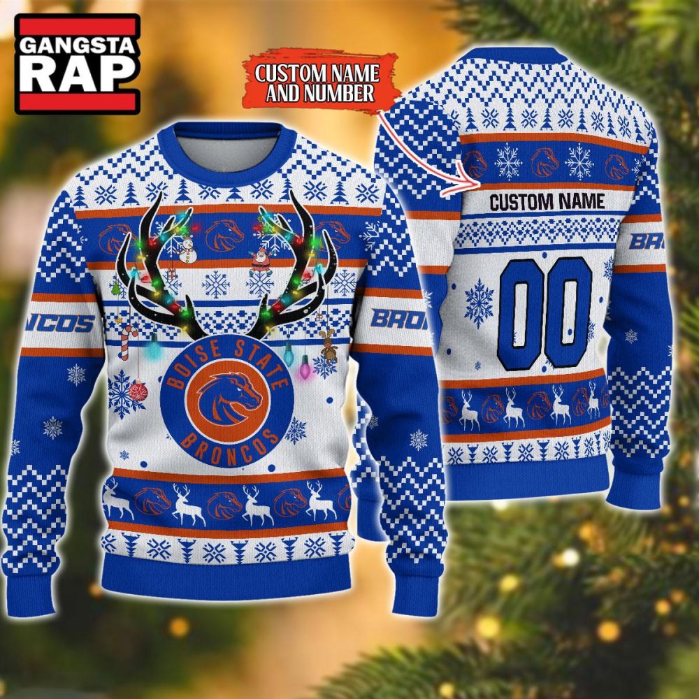 Photos Of Free NCAA Boise State Broncos Design Logo Team Reindeer Light Ugly Christmas Sweater
